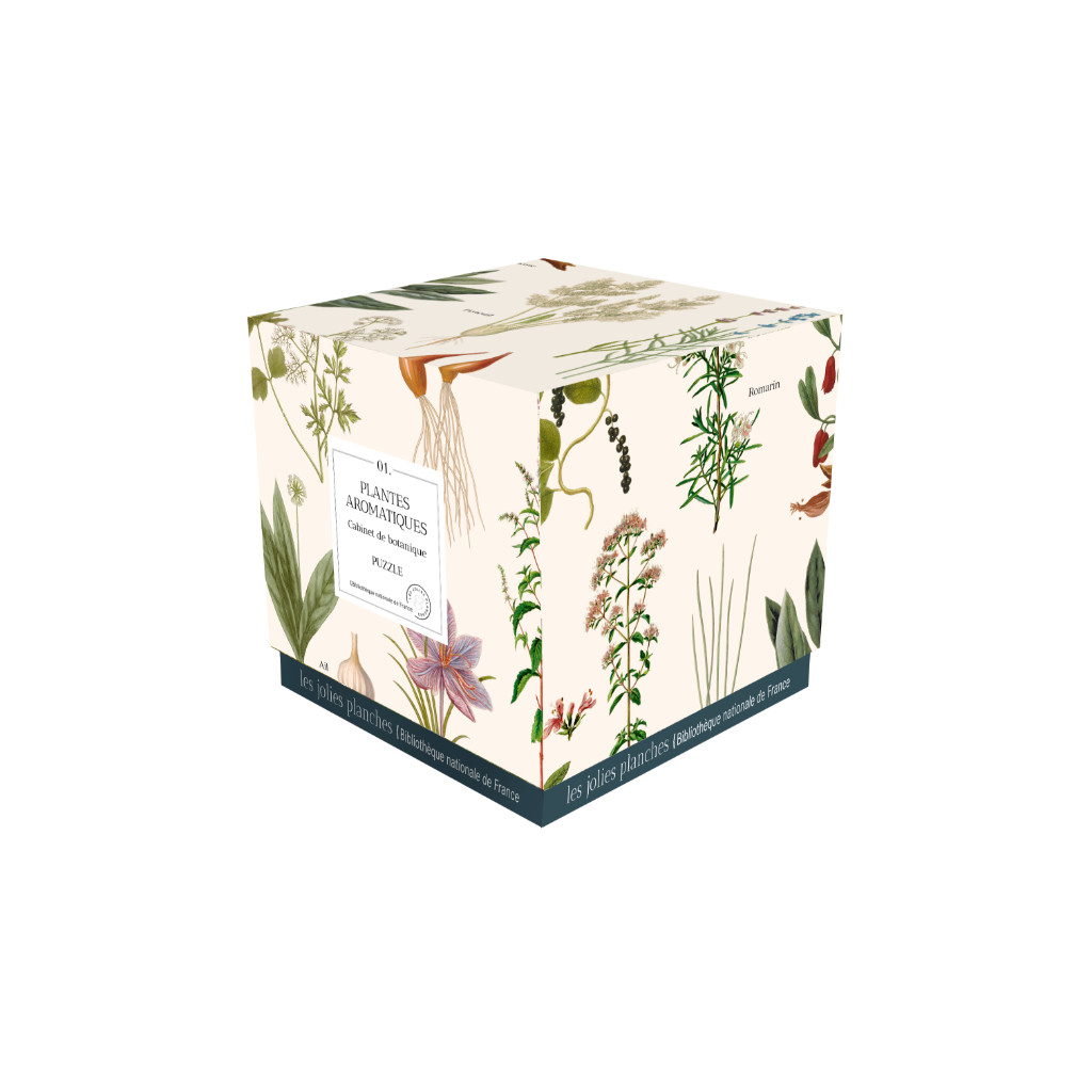 This puzzle is an original creation by Les Jolies Planches based on antique illustrations. Taken mainly from Le Règne végétal, a leading botanical work from the early 20th century, these drawings of marjoram, chives, sage, vanilla, cinnamon, cardamom, and more offer a beautiful and fragrant herbarium. These delicate illustrations were rediscovered with the help of the Bibliothèque nationale de France for our collection.