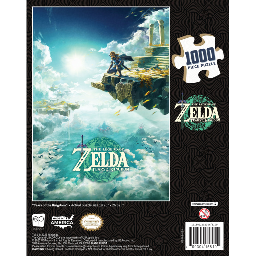 Visit the open-world adventures of the new The Legend of Zelda: Tears of the Kingdom action-adventure hit with the Tears of the Kingdom 1,000-piece jigsaw puzzle where Link is looking out over Hyrule from a Sky island!