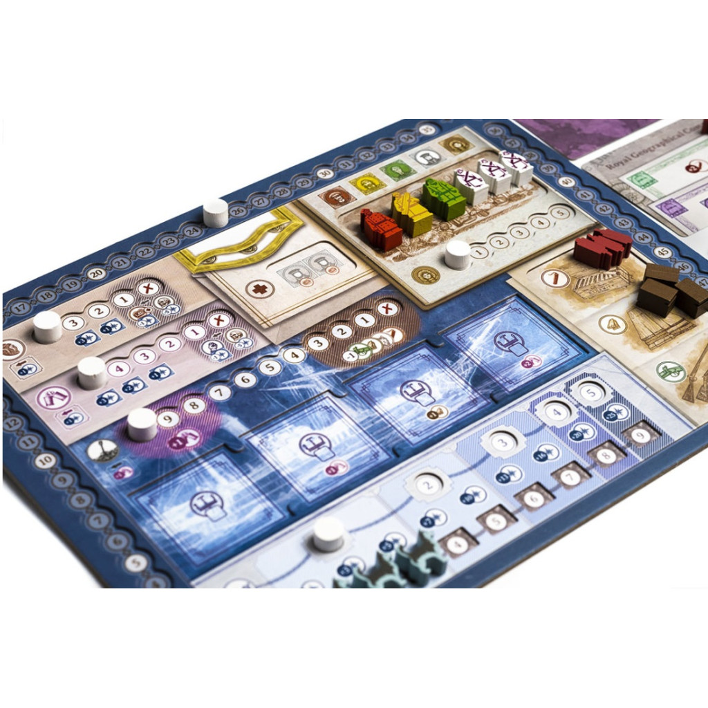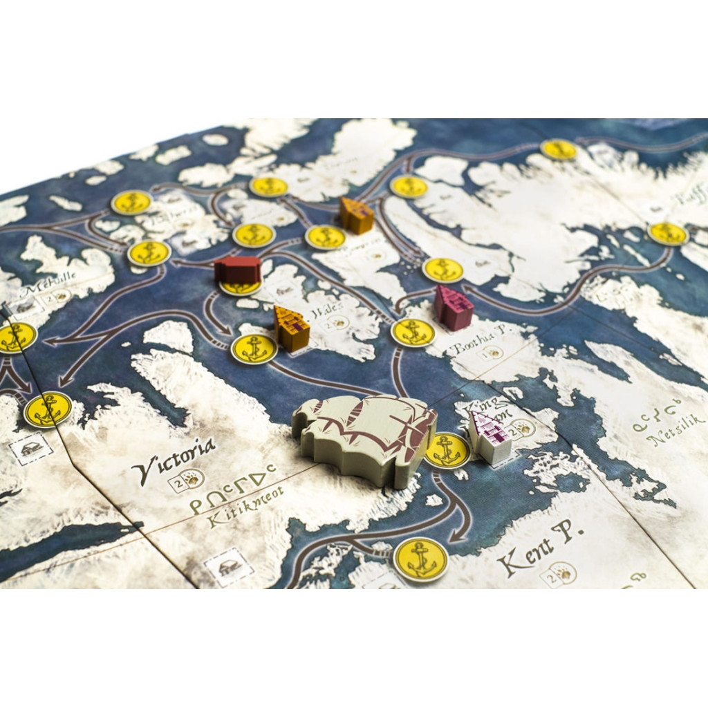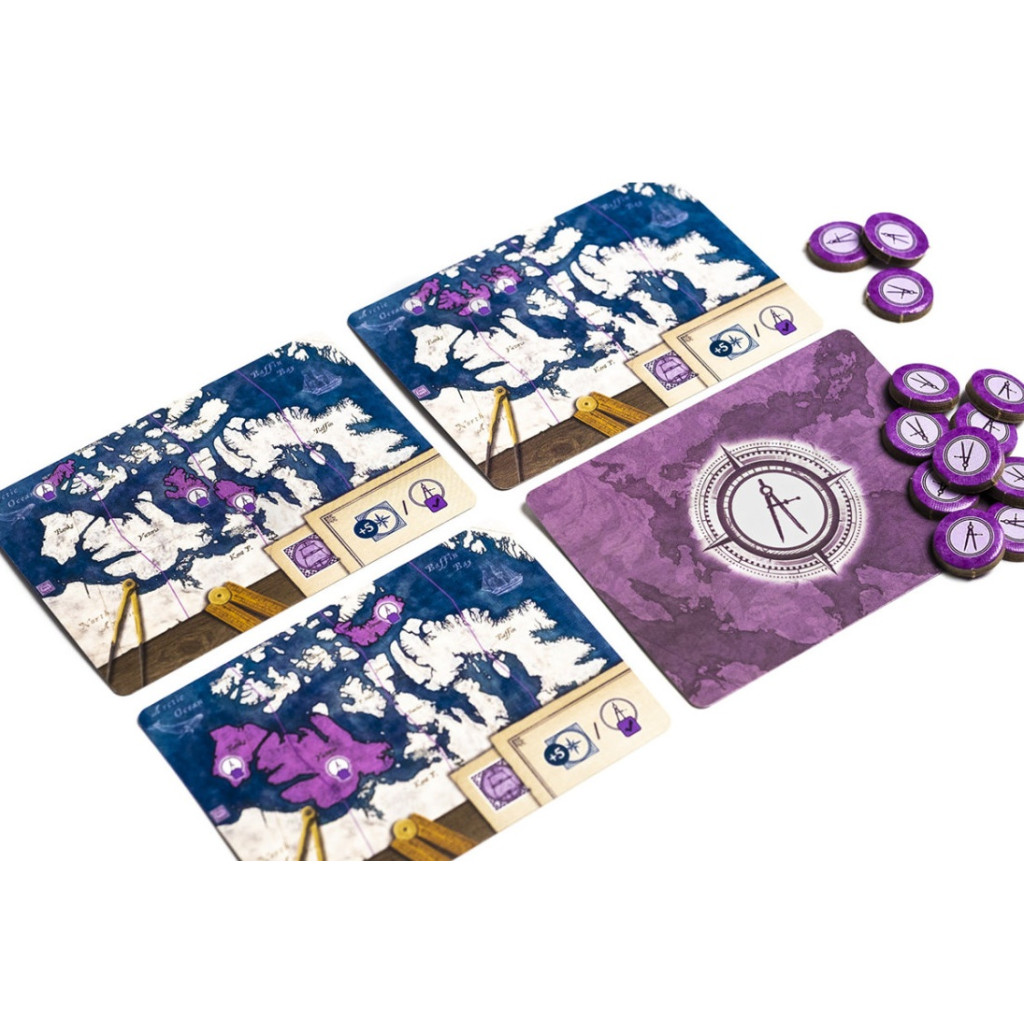 As the expedition progresses new map pieces and routes will be revealed and added to the modular board. Each player is in charge of their own ship, and the crews include three officers with individual abilities: