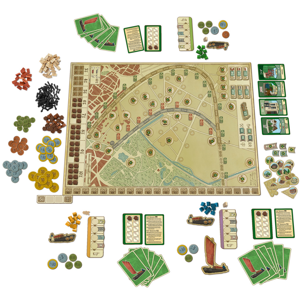 Findorff offers an economic engine builder with a resource market for peat known from Power Grid and an innovative resource management required when building rail tracks and houses in Findorff. Your focus is on raising the right combination of the 25 historical structures from the period of 1803 to 1916. Do you raise the Reed Chair Factory or the Slaughterhouse to gain a lot of thalers, or smaller structures like Schools, the Beer Hall, or the Peat Skipper Shelter to win the game in small steps. You can even profit from the high mortality rate of this period by running a Cemetery.