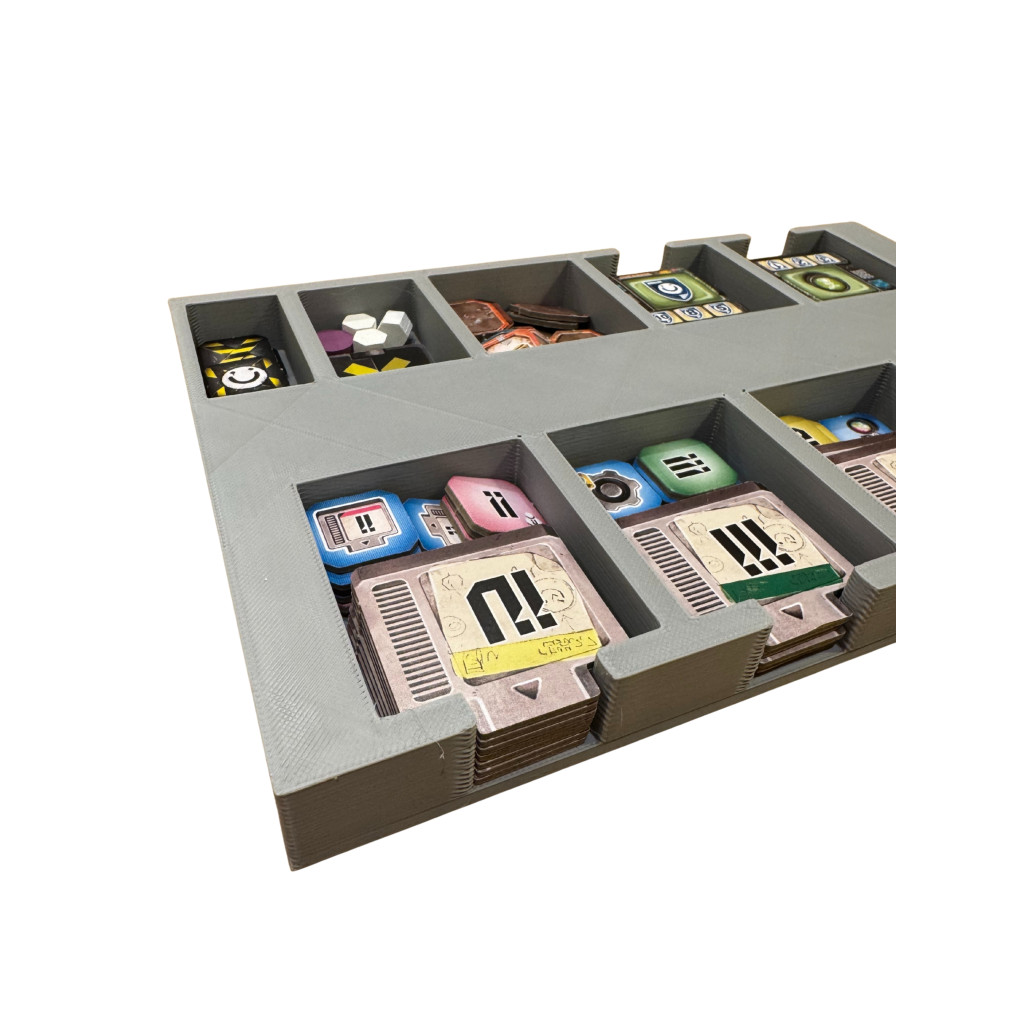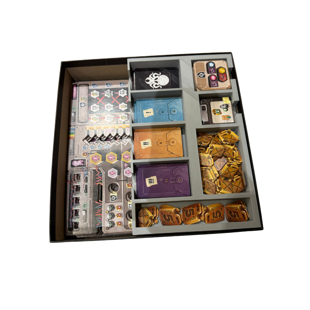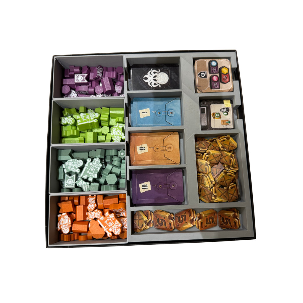 This fantastic box insert solves that problem. You get two large trays that hold all the game components and are also suitable for sleeved cards. Each player has a small box where everything can be quickly stored away after the game.