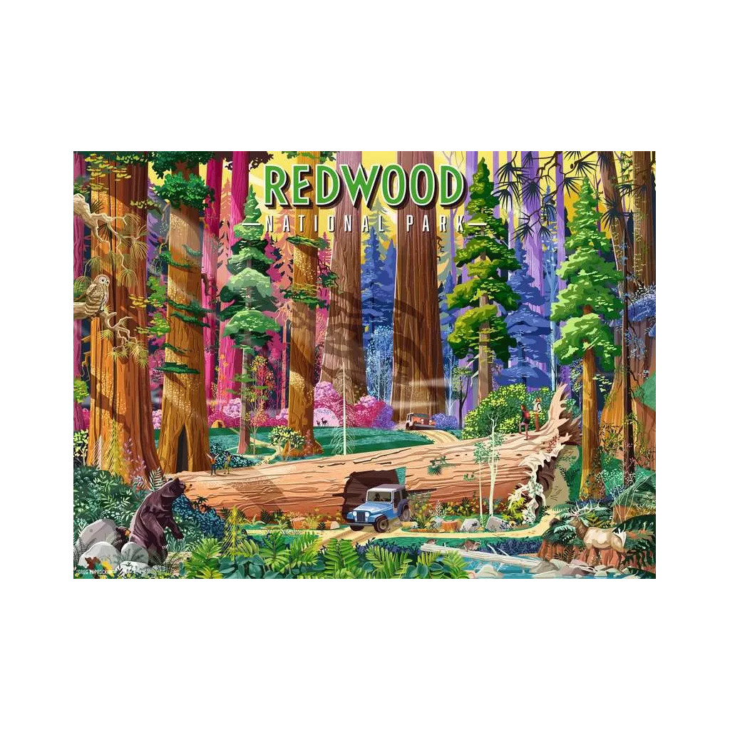 Part of the National Park Collection, this puzzle celebrates some of the tallest and oldest trees on Earth. Redwood National Park, established in 1968, is home to magnificent old-growth coast redwoods that can soar over 300 feet and live for up to 2,000 years. Although the park no longer has tunnels through fallen trees (the one pictured is inspired by the famous Tunnel Log in Sequoia National Park), the artwork perfectly captures the incredible scale and beauty of these giants. A perfect puzzle for nature lovers, travellers, and anyone who enjoys a mindful challenge!