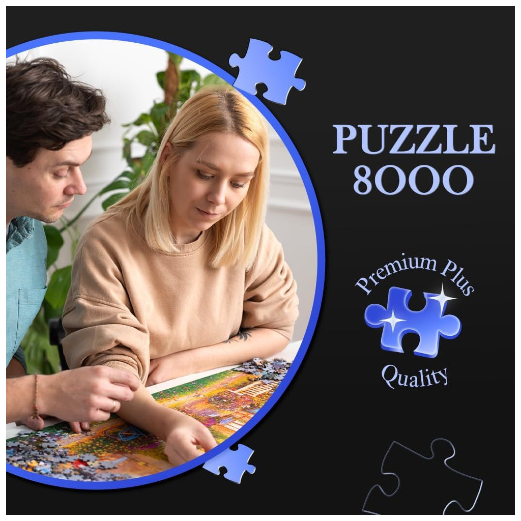 The 8000-piece PREMIUM PLUS QUALITY jigsaw puzzles are characterised by their perfectly fitting pieces and high-quality cardboard.