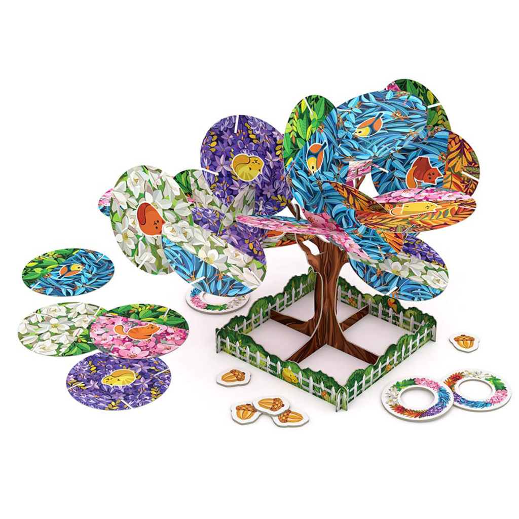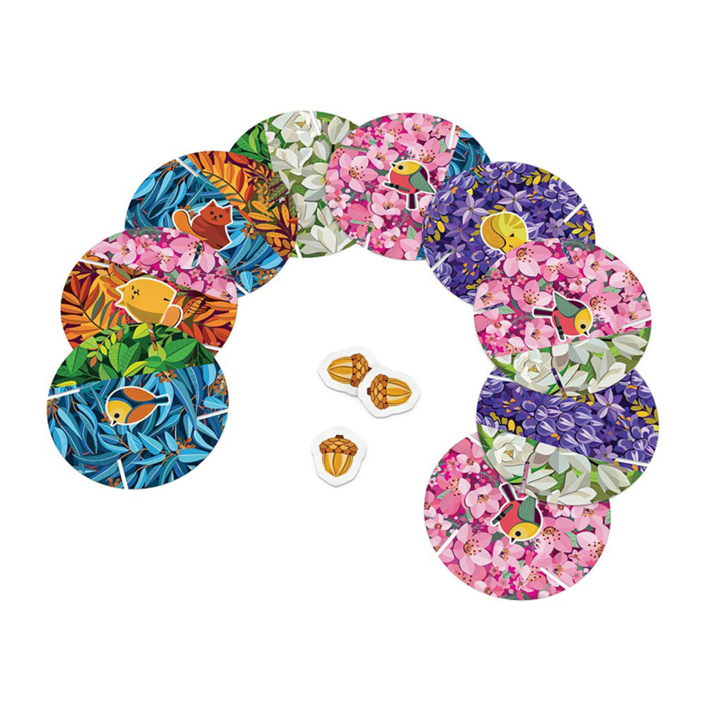 Leaves are picked up by the shovelfulArbolito is played over several rounds, with each player taking a turn to attach a leaf card to the tree. These “leaf” cards feature one to three color zones. To be placed, you need to match the chosen corridor with the colors of the cards already present.