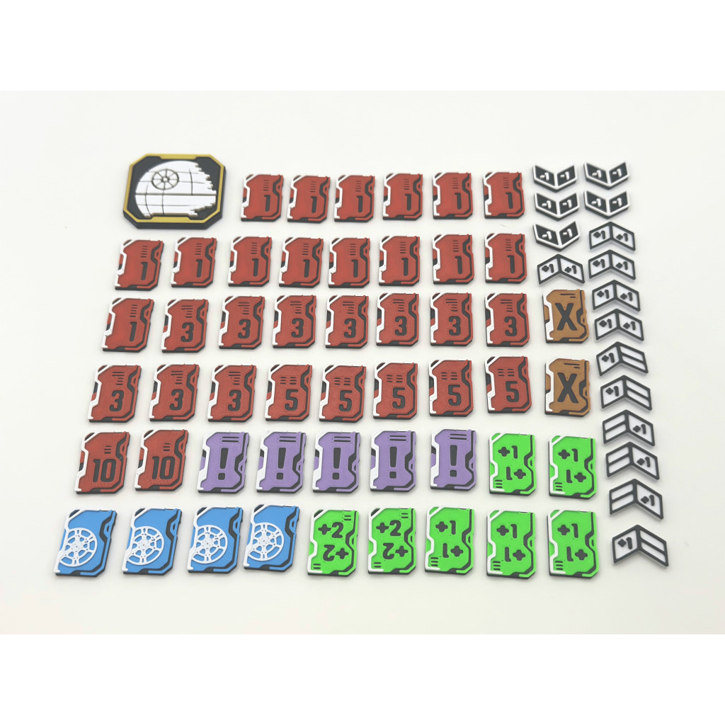 This premium token set has been designed for players of Star Wars: Unlimited who value quick access, organized gameplay, and immersive sessions. It includes 67 high-quality tokens stored in a magnetic box that fits perfectly inside the official card box of the game.