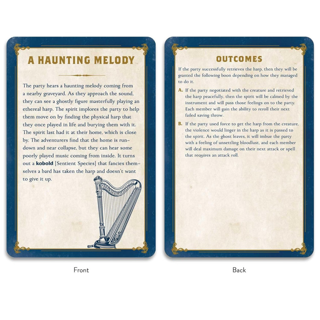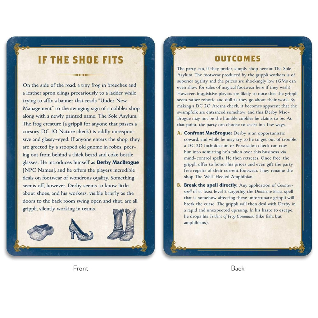 Best of all, this deck is user-friendly, making it an essential addition to your session prep. Game masters can effortlessly draw a card to find the perfect mini quests, seamlessly integrating them into any fantasy world campaign. Each card offers a narrative that’s flexible and adaptable, to suit your favorite fantasy worlds and backgrounds. Whether you’re a seasoned game master or new to tabletop RPGs, this versatile and easy-to-use deck is the ultimate took to enhance your campaign with immersive storytelling, endless fun, and unforgettable adventures.