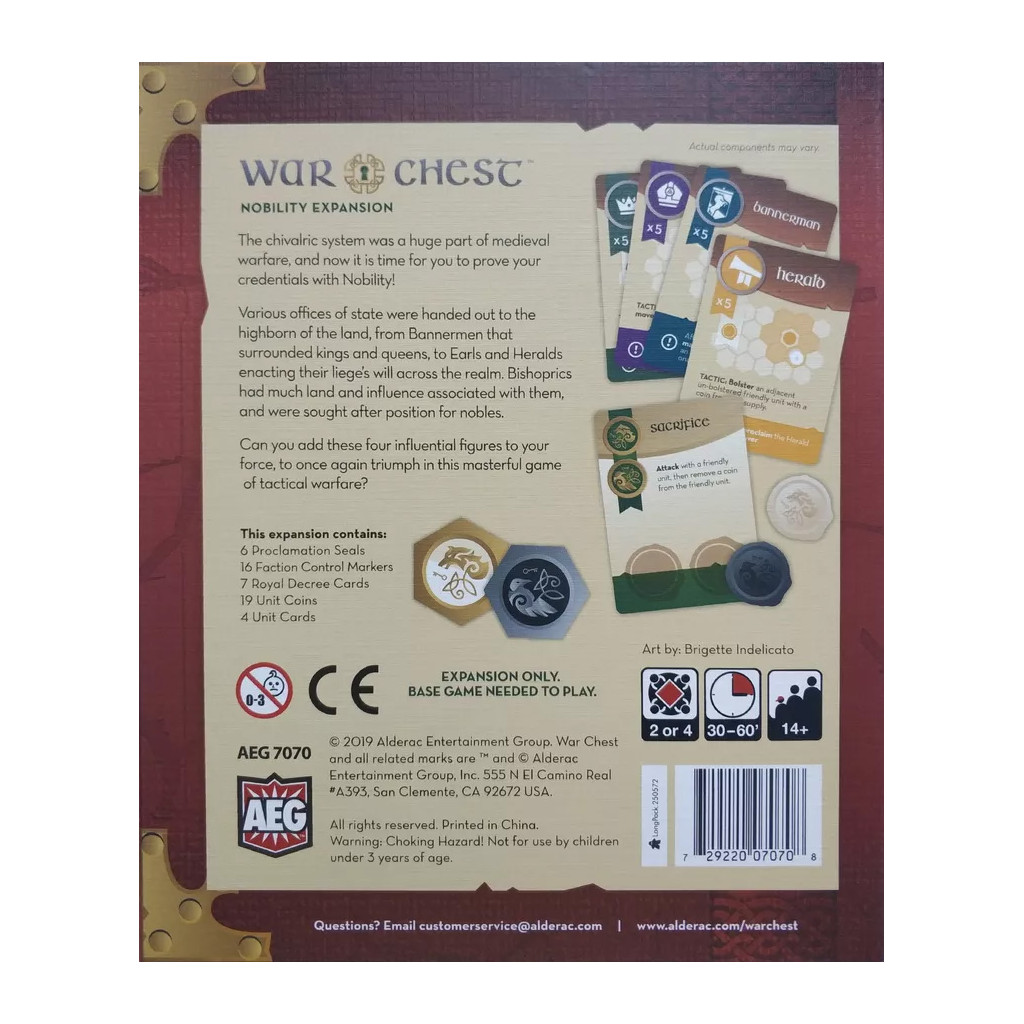 Step into the grandeur of medieval warfare with War Chest: Nobility, the expansion that introduces a new dimension to the strategic masterpiece. Embrace the chivalric system as you navigate the intricacies of the battlefield, where Bannermen, Earls, Heralds, and Bishoprics play pivotal roles in shaping the course of your conquest.