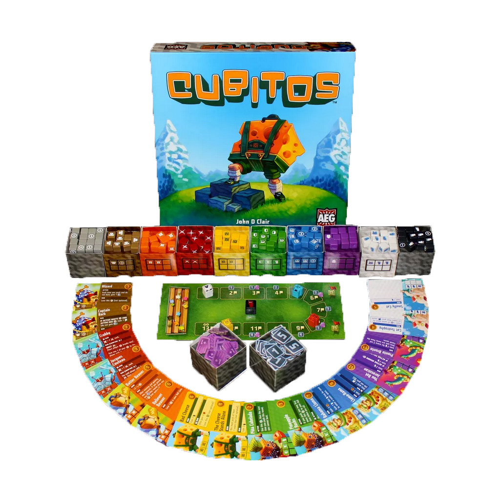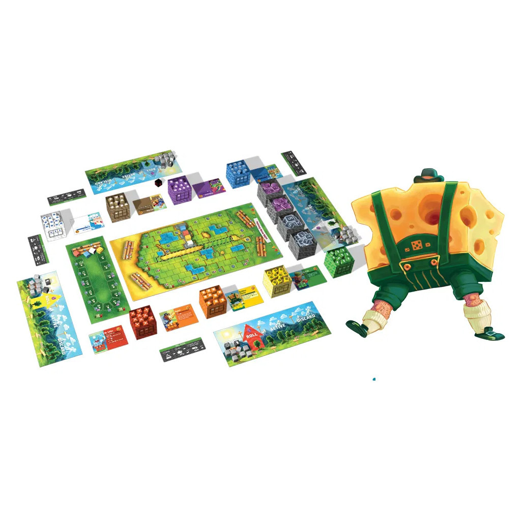 Each turn, you roll your cubes simultaneously. Try to get foot faces to advance on the track and coin faces to buy better cubes! Some of them have effects (which are renewed each game thanks to the card sets), but be careful not to want them too greedily...
