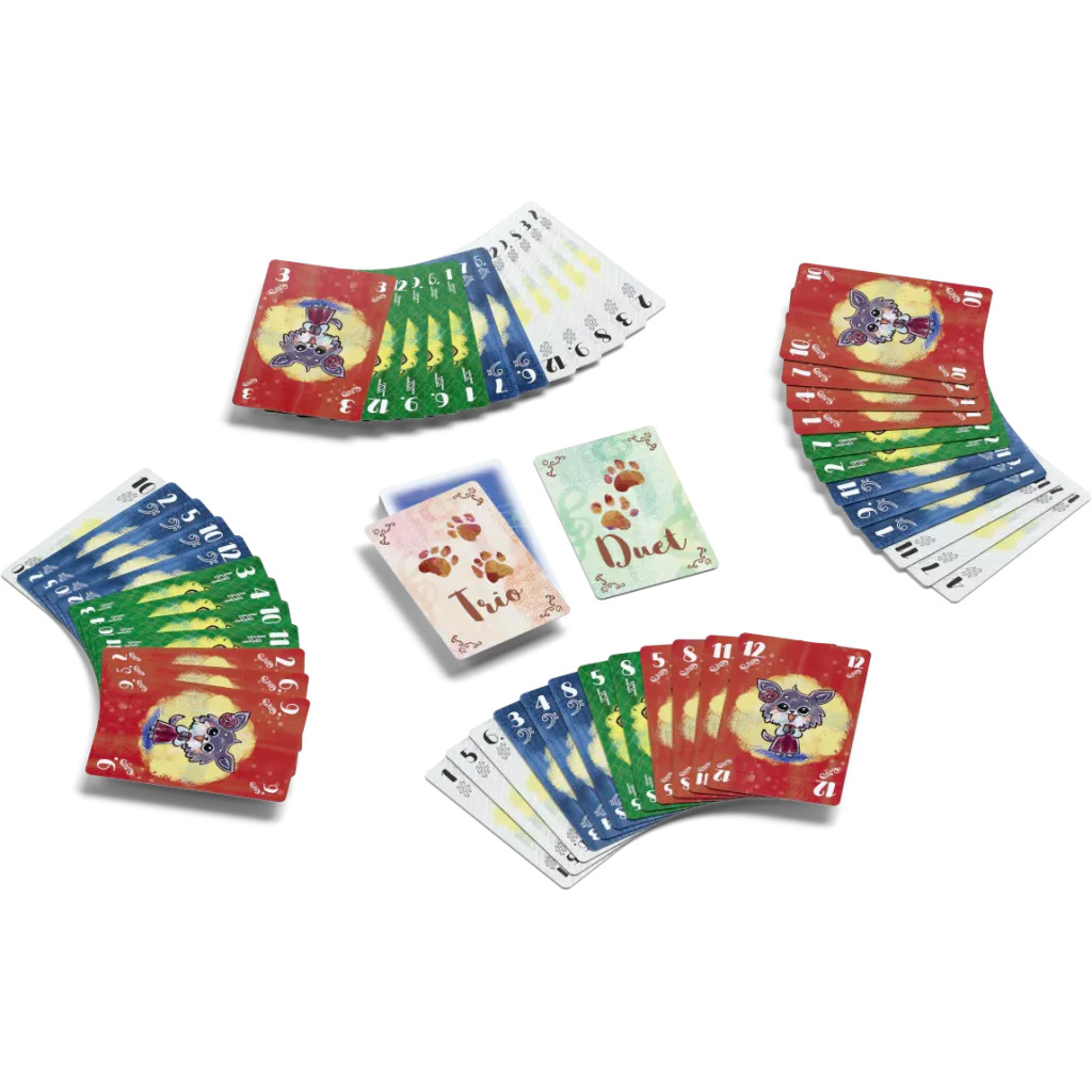In Vivo, each round starts by revealing a harmony type (Solo, Duet, Trio, Quartet). The harmony determines how many suits must be played in the trick—not being able to is considered playing “off-harmony,” making that player ineligible for points.