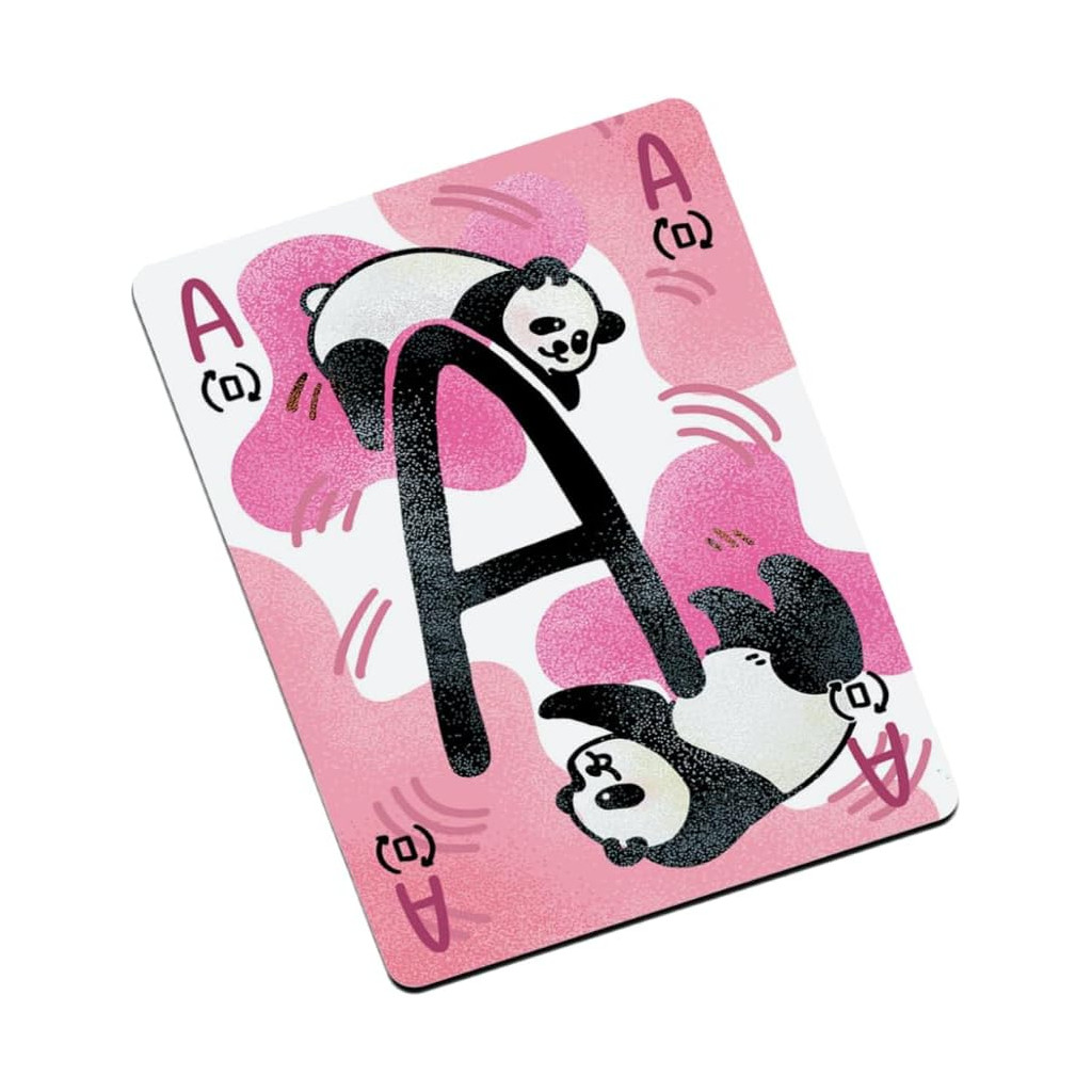 In Panda Panda, players carefully manage their cards to try to make specific hands. On a turn, players can discard a card, draw from the deck, or draw from an opponent's discard pile. If a player discards an "A" card, everyone has to pass one card to the right.