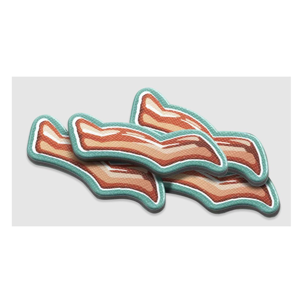 Bacon is a fixed-partnership climbing game for 4 or 6 players that is all about going out early as a team. The only team that scores is the team that goes out first. That said, their score depends on when their partner also goes out (more points if the partner goes out quickly). If your team does NOT go out first, your job is simple: make the other team go out as late as possible!