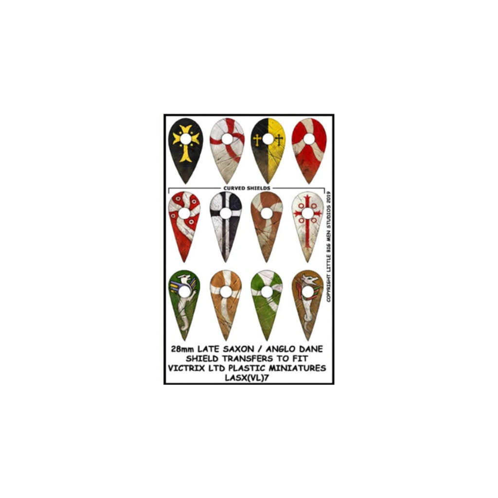 This set contains a sheet of 12 Late Saxon / Anglo Dane shield decals, designed for use with Victrix Anglo Ssxons / Danes miniatures.