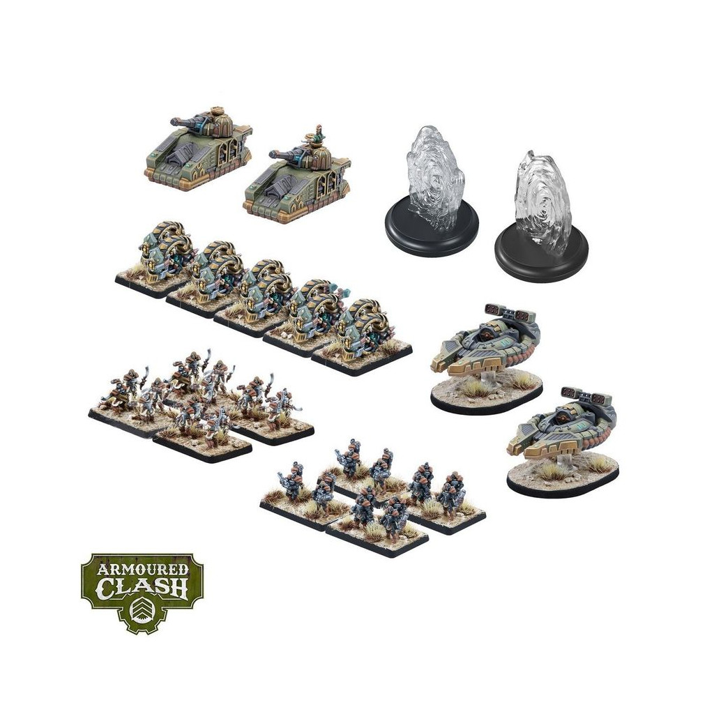 Armoured Clash is a 10mm scale tabletop wargame that uses highly detailed miniatures to represent ranks of infantry, squadrons of armoured vehicles, and huge fighting machines known as Behemoths. Pick your Faction, and fight for dominance in wars waged across this alternate late-Nineteenth Century, and determine the future of the Dystopian Age!