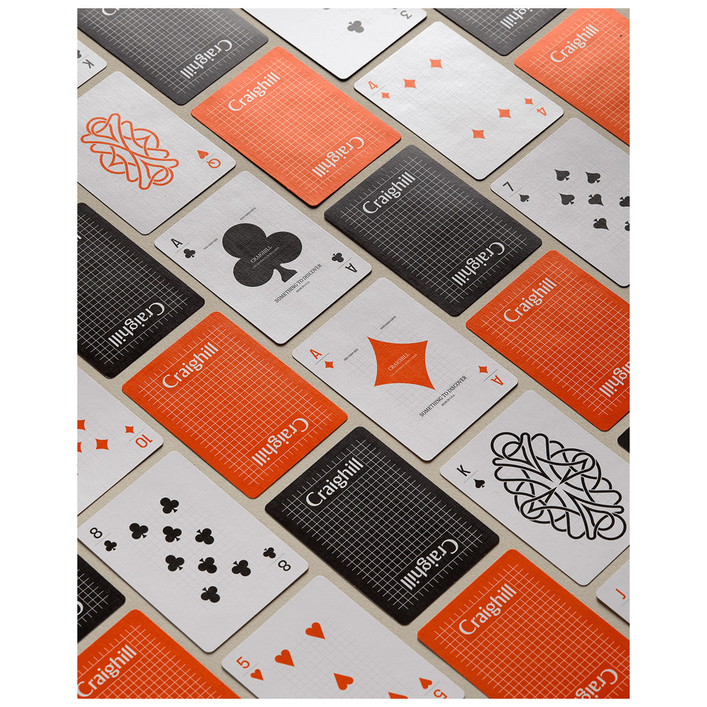 The full-color backs feature a minimal grid pattern with the Craighill logo mirrored on each end while the face cards depict a fresh take on traditional playing card design - the result is an extremely stylish and playable deck.