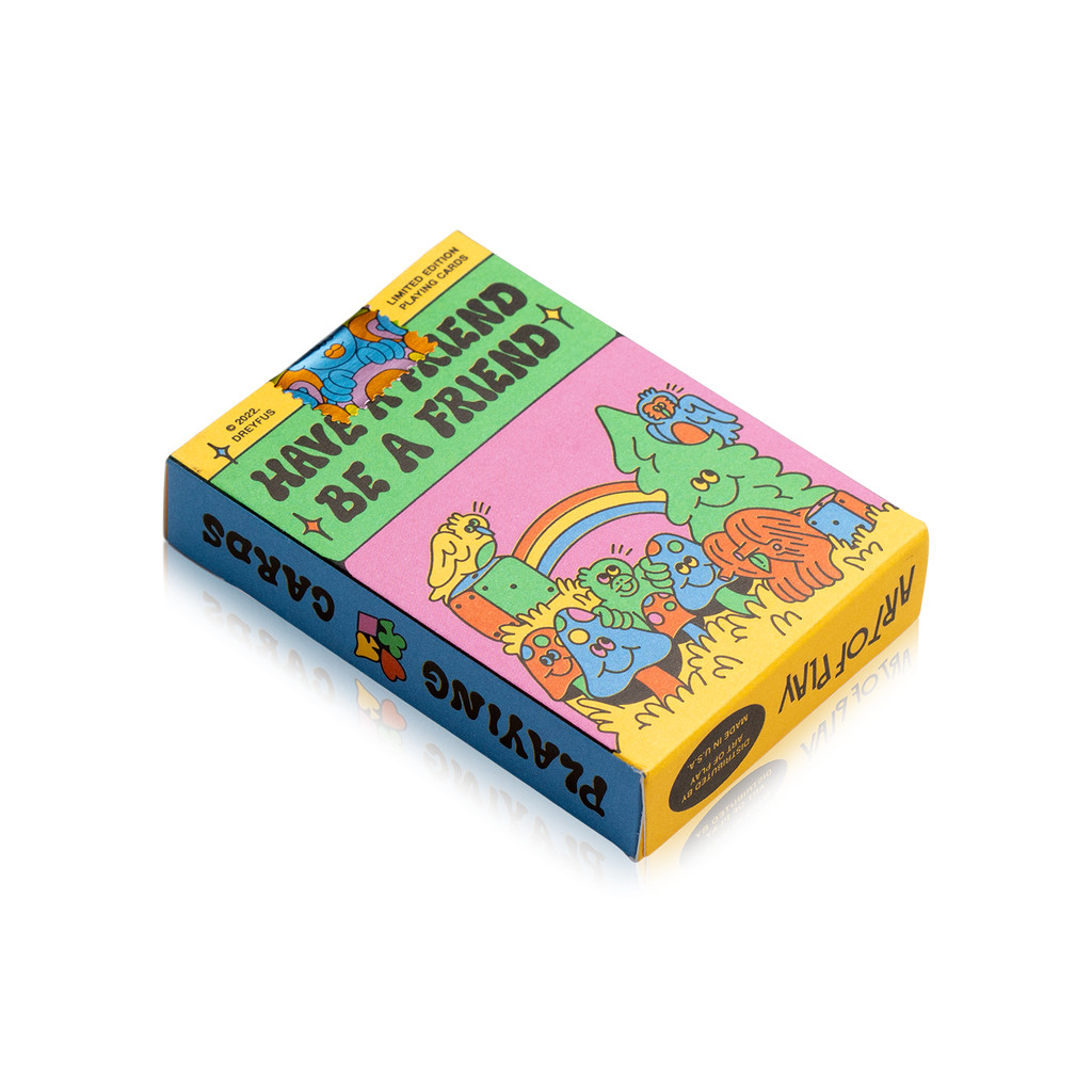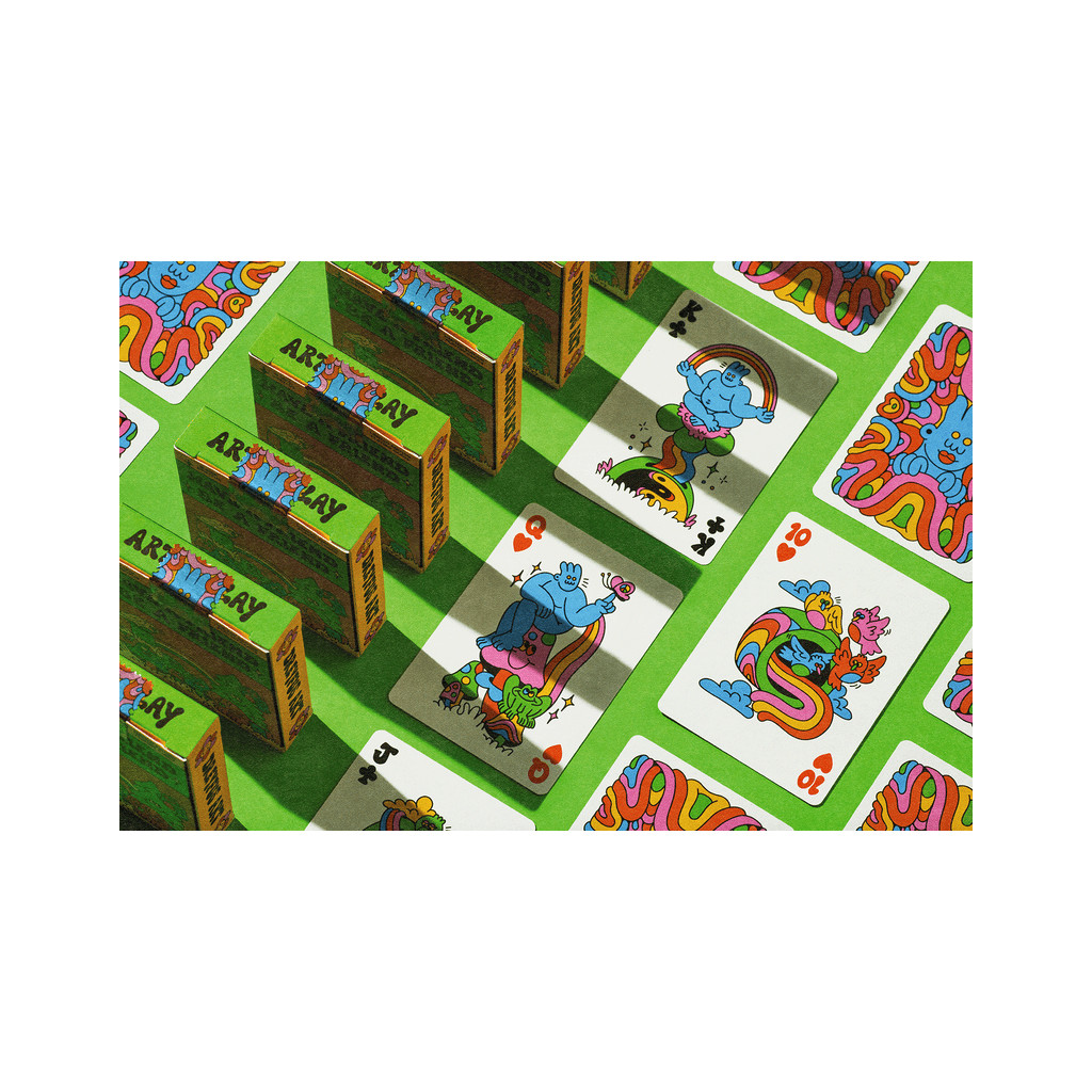 Printed by the U.S. Playing Card Co. and housed inside a vibrant letterpress-print tuck box. Sealed with a rainbow foil sticker.