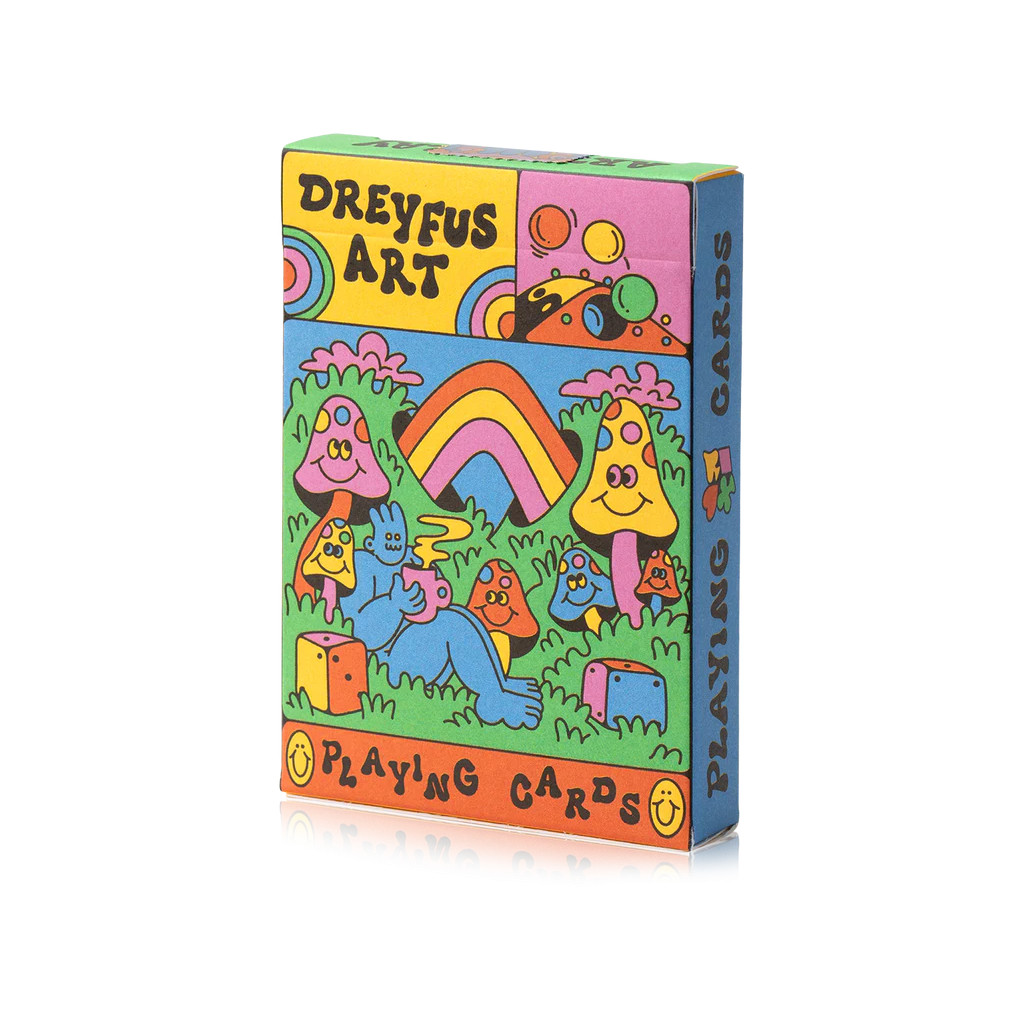 Produced in collaboration with the wildly imaginative illustrator Ashley Dreyfus this fully custom deck of cards features a colorful cast of characters drawn in a whimsical, psychedelic style.