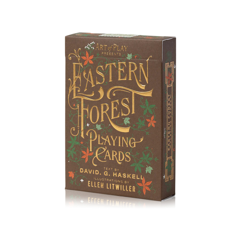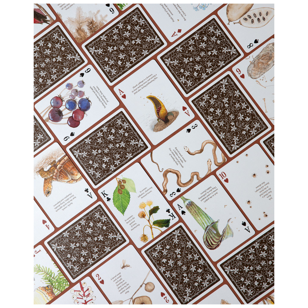 Text by David G. Haskell with illustrations by Ellen Litwiller. Printed by The U.S. Playing Card Co. on FSC® certified Paper. Packaged in a beautiful foil-stamped tuck box.