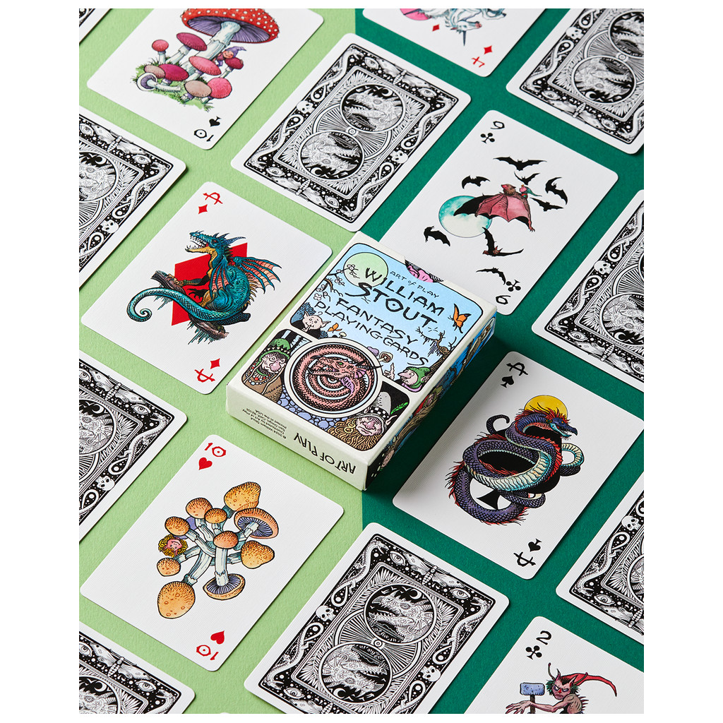 Journey through a mythical world of magic with 54 original illustrations that transform traditional playing card composition into an adventure story featuring fantastical beasts from another world. Fantasy playing cards by renowned artist William Stout is our first fully custom Transformation Deck.
