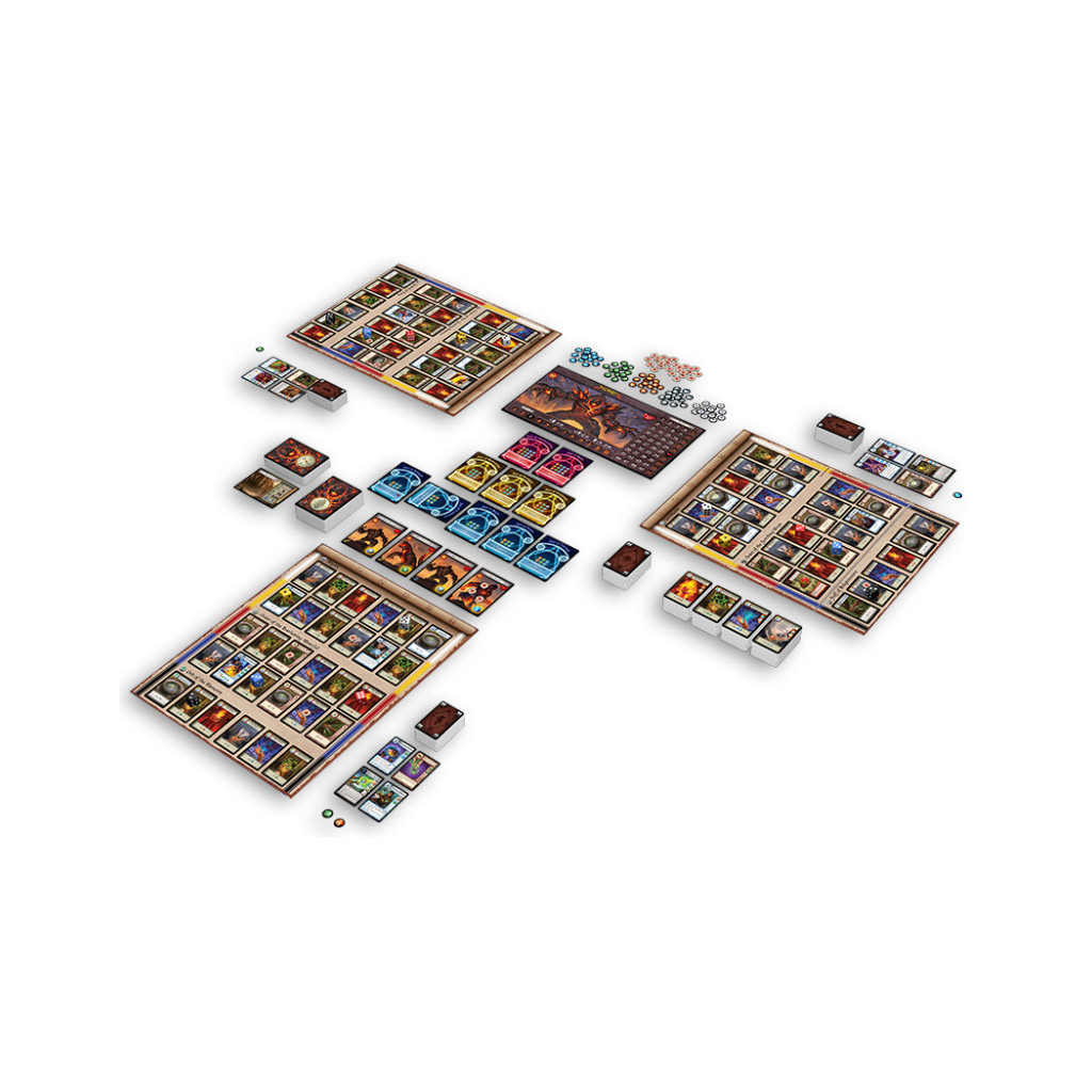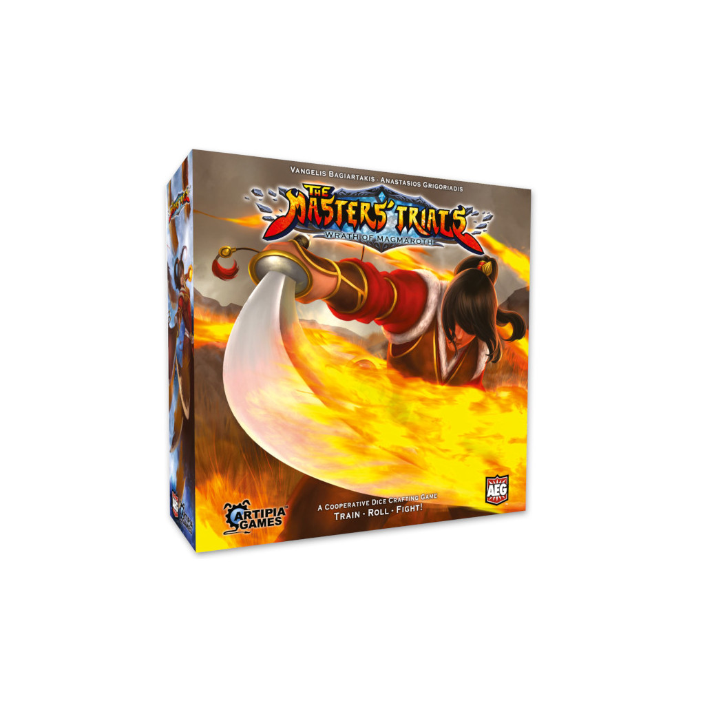 The Masters’ Trials: Wrath of Magmaroth is a cooperative dice-crafting game in which players represent the masters from the orders that have banded together to face the evil elemental. Each player has a board that represents their character and 5 dice which they use to apply the effects of their abilities. Each round they face new minions, generate mana and get to master new abilities, adding them on their characters. After 10 rounds, they come face to face with the powerful Magmaroth which they have to defeat before the whole volcano collapses around them.