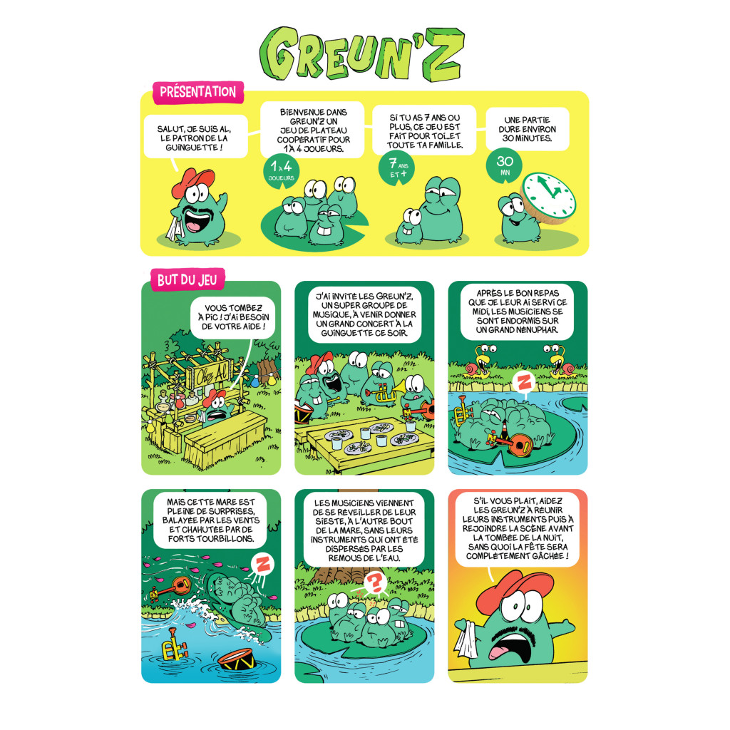 Greun’Z is a cooperative family board game where communication, teamwork, and speed are essential to successfully complete the mission and reach the stage on time.