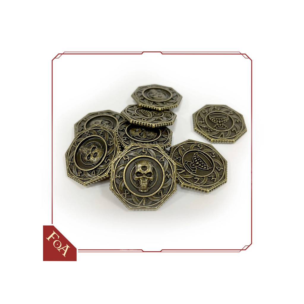Metal replacements for 10 plastic dials found in the Fall of Avalon Core Box.