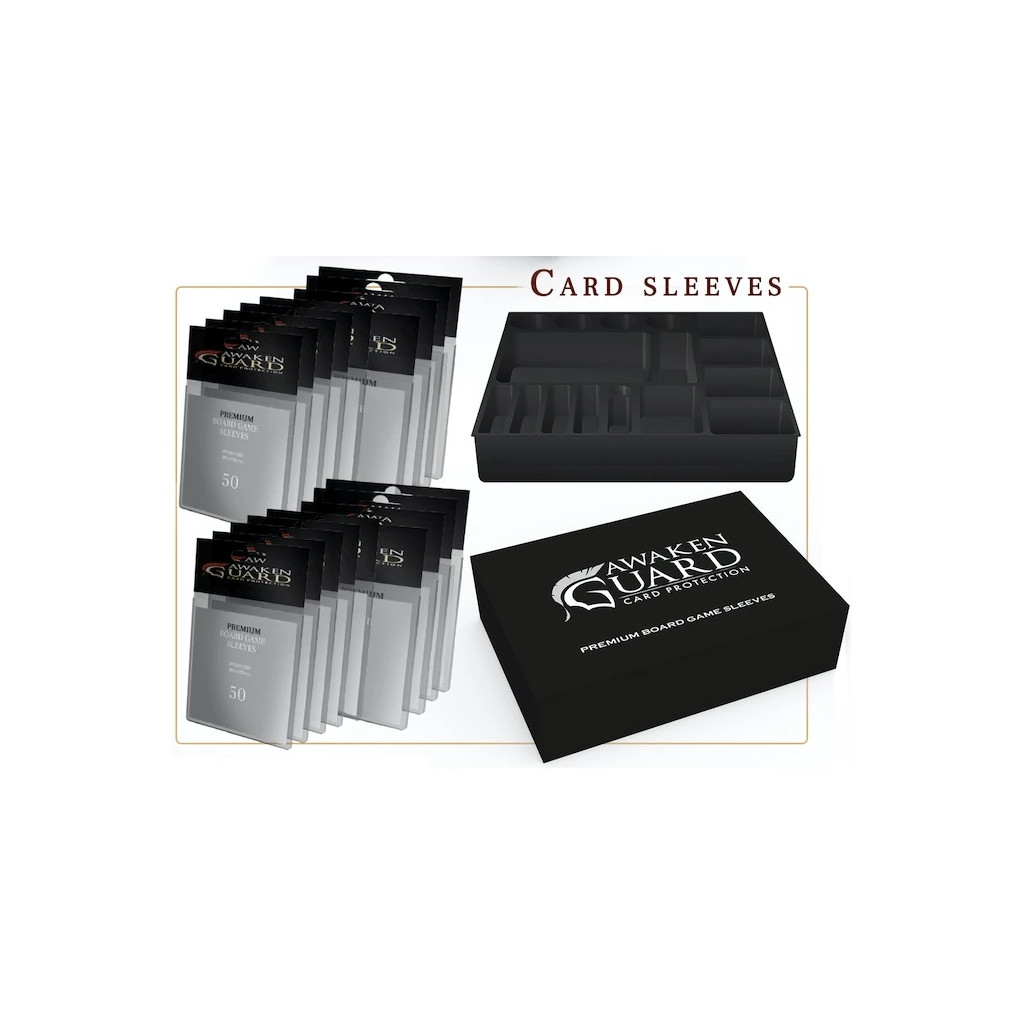 All sleeves are 100 microns thick. They are of premium quality and maintain a high clarity standard. Guaranteed to accommodate all your Kings of Ruin Core Box and Stretch Goals cards. This box contains plastic insert to fit all sleeved cards!