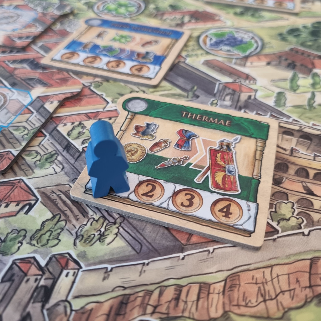 Relive Pompeii’s glory in a boardgame – See Pompeii come to life as you play. You build the city with every turn – from bustling workshops to grand public buildings. While you shape Pompeii, the evocative artwork breathes life into the ruins, capturing the city in its prime.