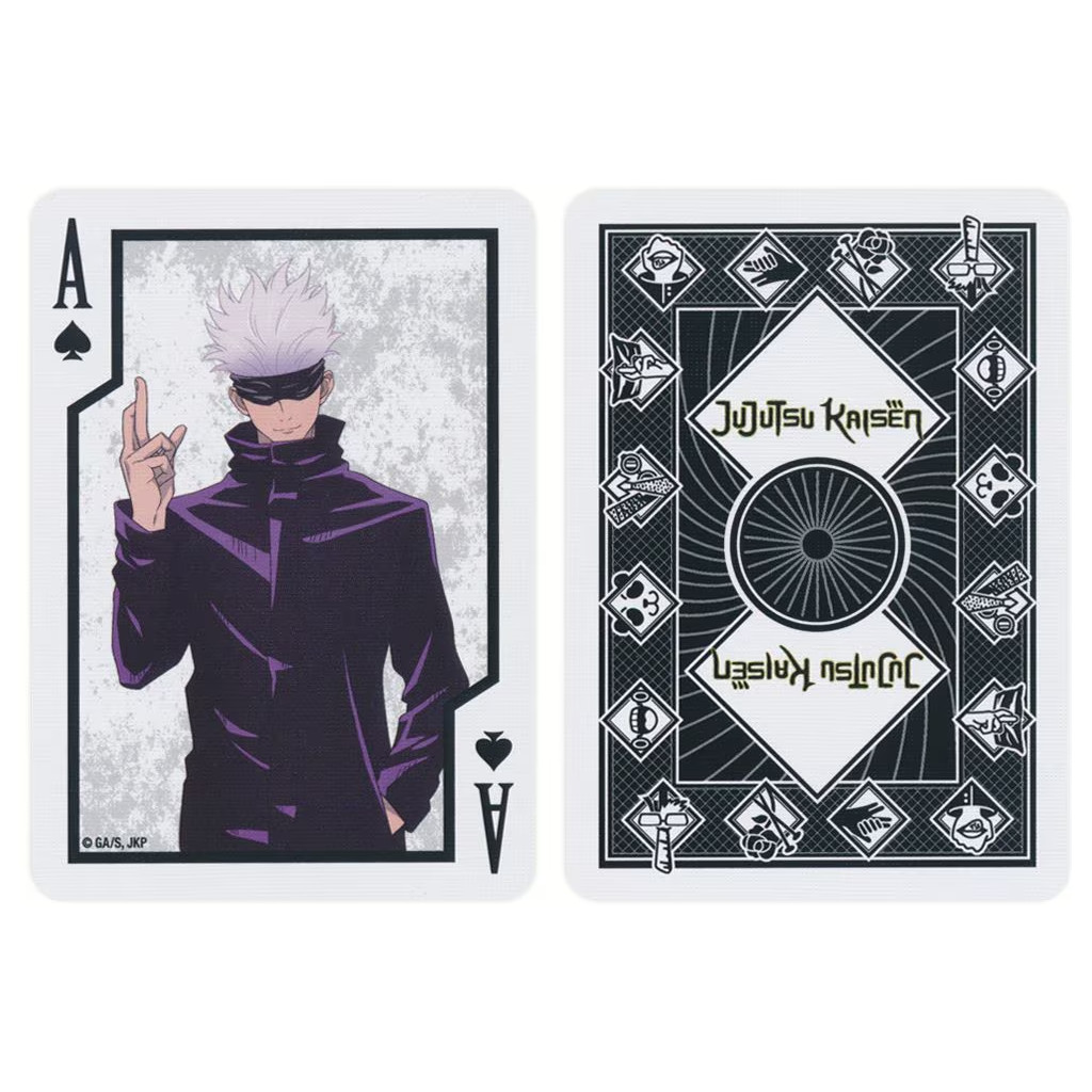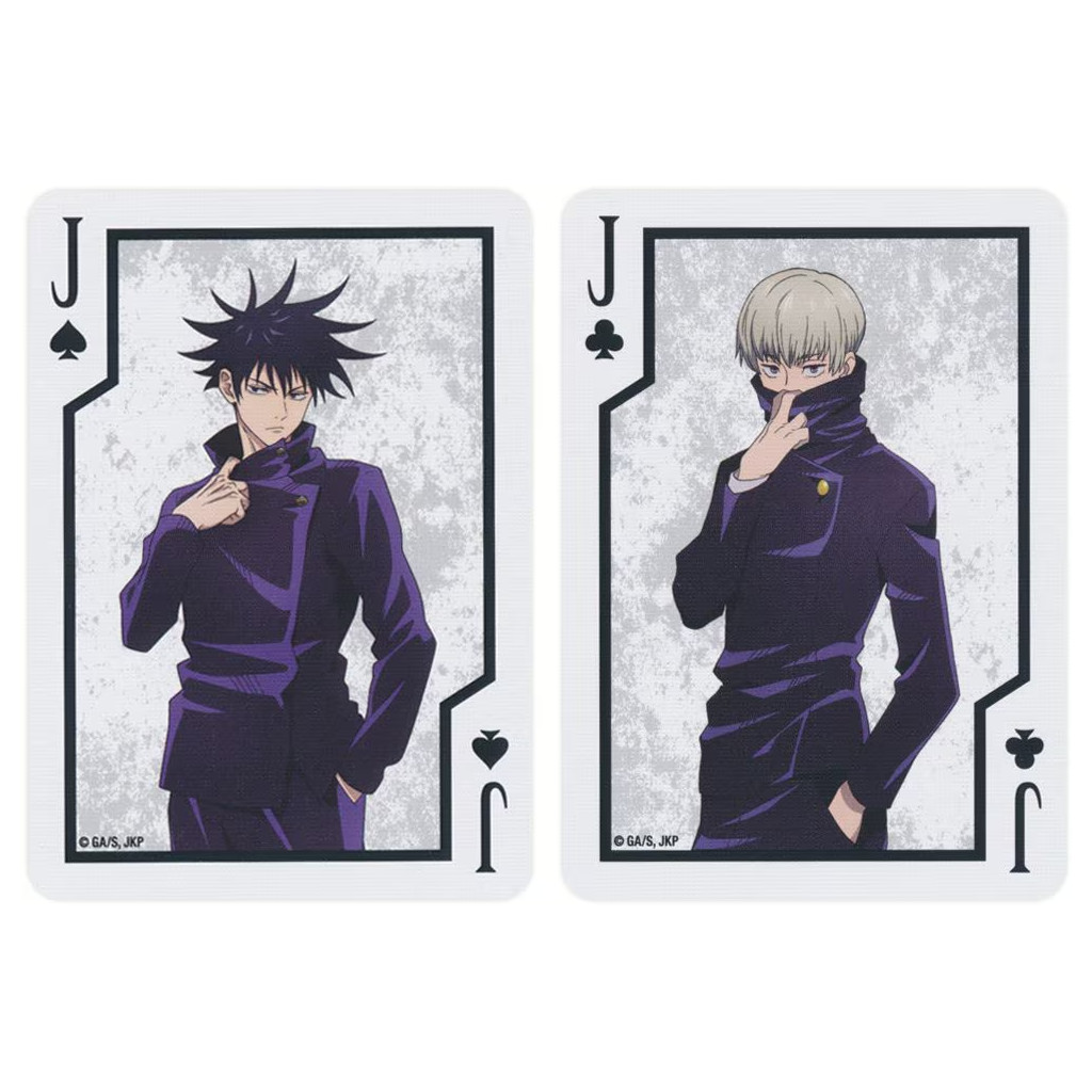 Attack each round of cards like a Jujutsu Sorcerer! With a custom card back featuring the Tokyo Jujutsu High School logo, and a fan favorite characters on the court cards, are you ready to face the curse? Striking court card featuring character artwork of Yuji, Megumi, Nobara and Gojo, as well as stylized pips reminiscent of Sukuna’s tattoos.