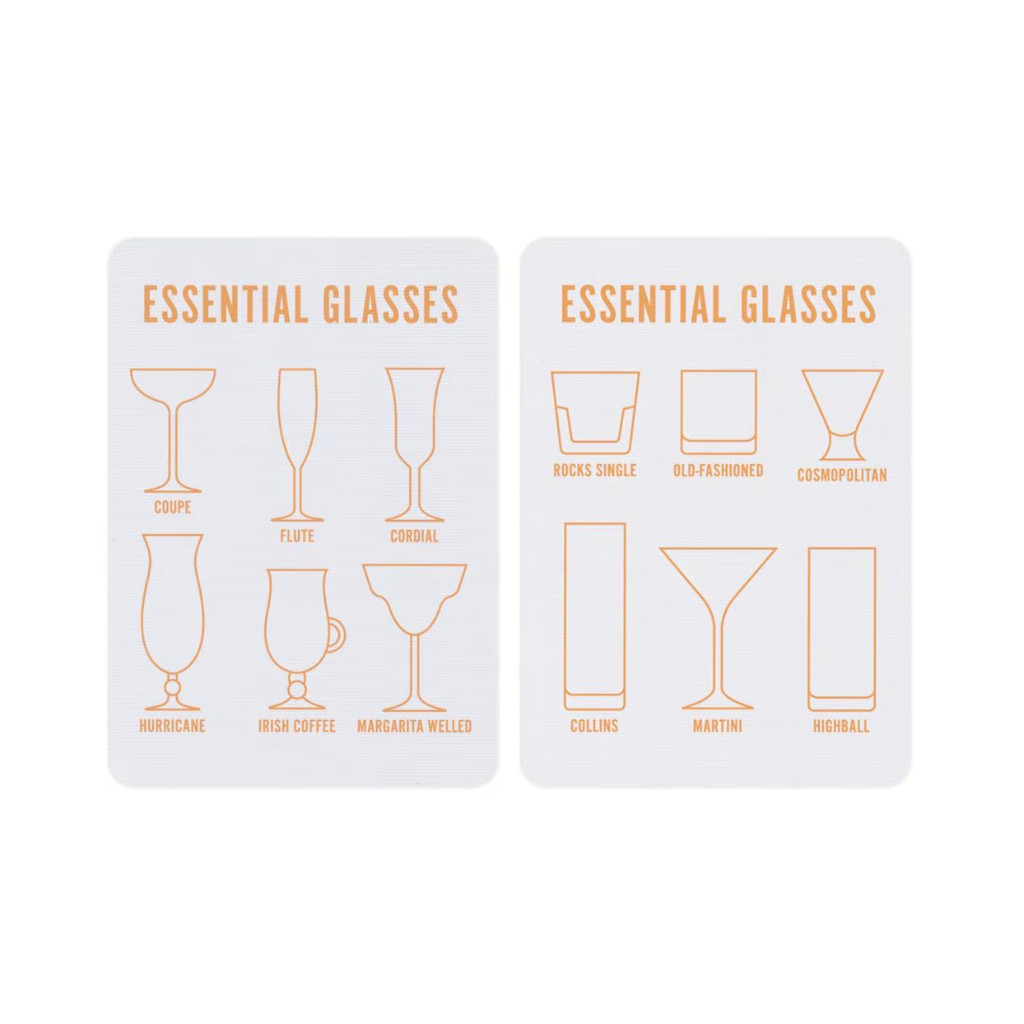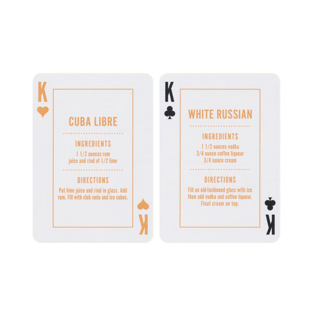 The Bicycle Cocktail Recipes playing cards include 56 poker size playing cards including 2 Jokers + 1 essential glassware card and 1 Bicycle card. These Bicycle Cocktail Recipes playing cards are printed with vegetable-based inks on paper sourced from sustainable forests on patented premium quality Bicycle cardstock by USPC in the United States of America and feature an Air-Cushion Finish® for superior playability.