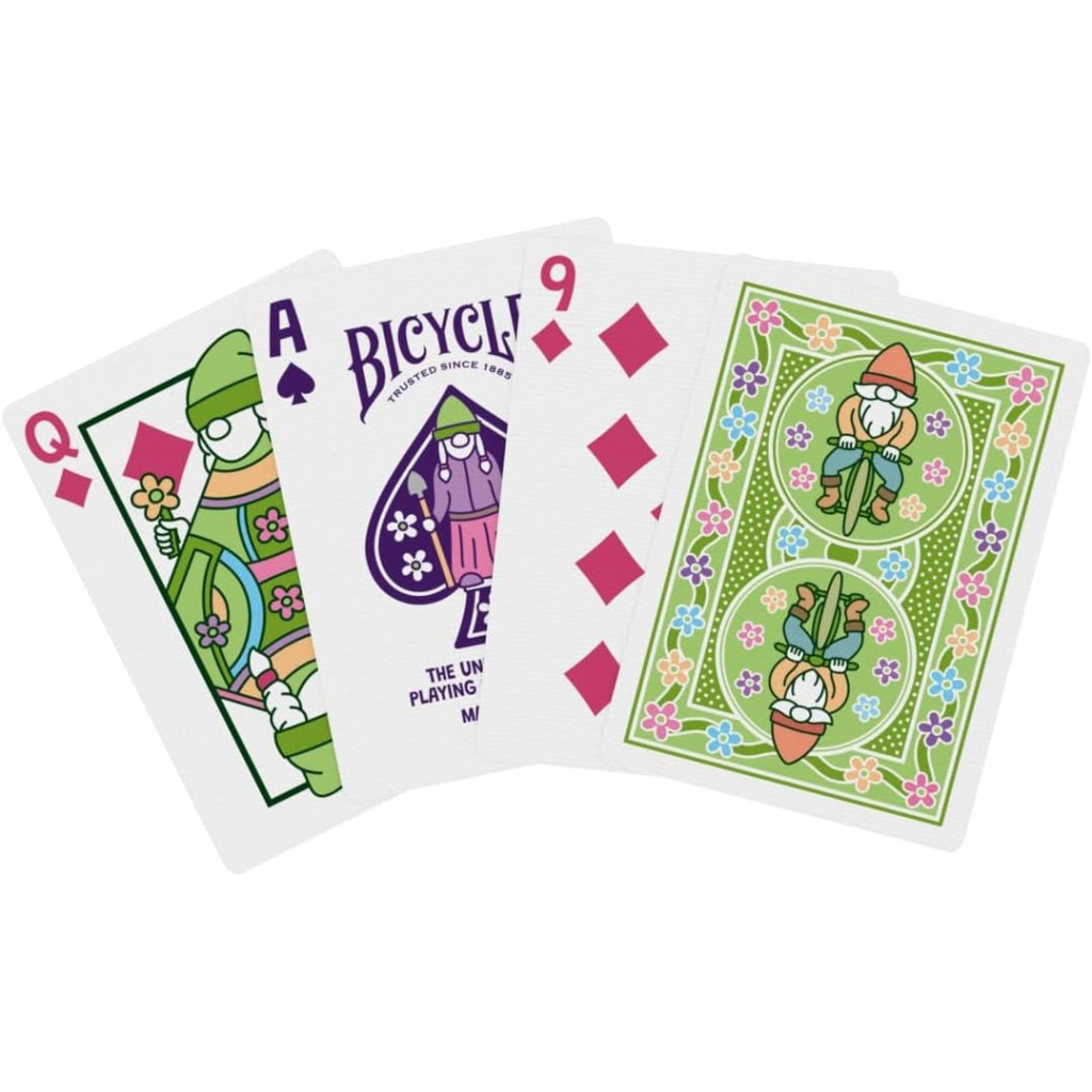 Add a touch of folklore to your game nights with Bicycle Garden Gnome playing cards! A lovable garden gnome adorns the card backs and the box, while each face card is designed with gnome-inspired accessories.