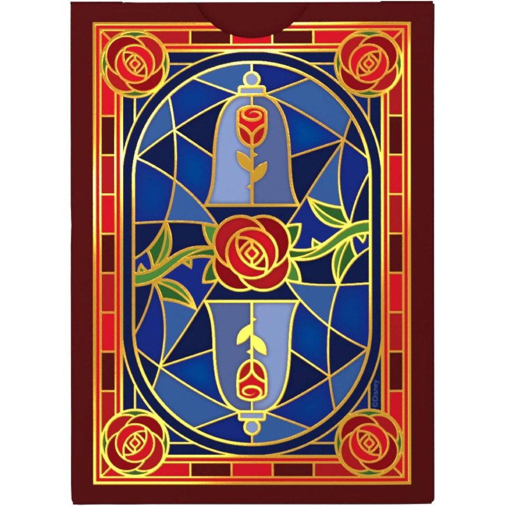 Presented in a luxurious gold‑foiled tuck case, this premium deck makes a stunning keepsake for fans and collectors alike. Inside, each custom‑designed court card brings iconic characters such as Belle, the Beast, Mrs. Potts, Lumière, and more to life with exquisite detail and storybook charm. The elegant card back features the enchanted rose, adding a touch of wonder to every shuffle and deal.