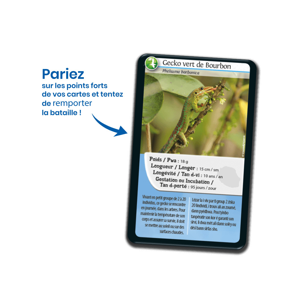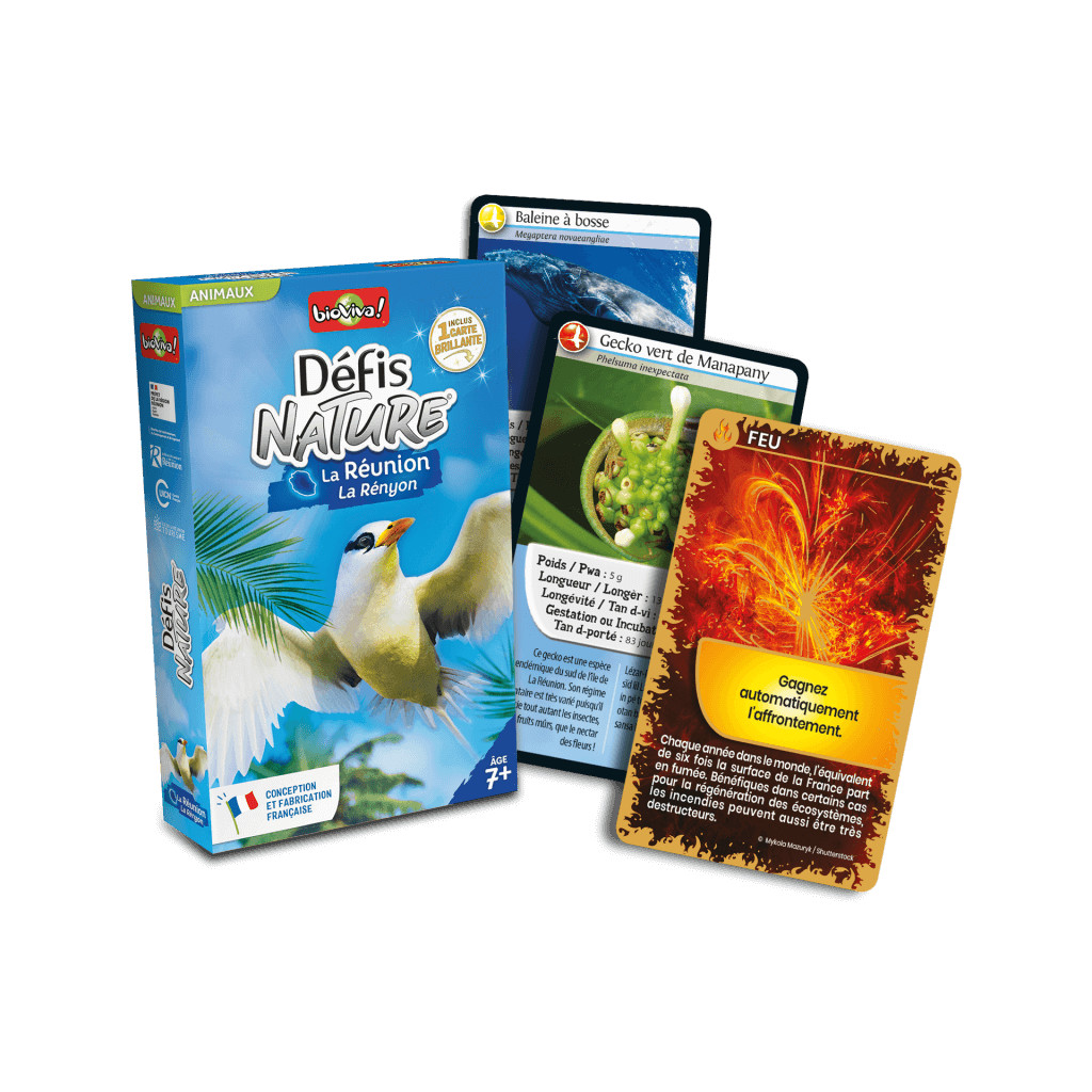 Défis Nature – Reunion Island takes you to meet the animals that inhabit Réunion Island! Learn about their characteristics, then bet on their strengths to collect all the cards and win the game. So, are you ready to take on the challenge?