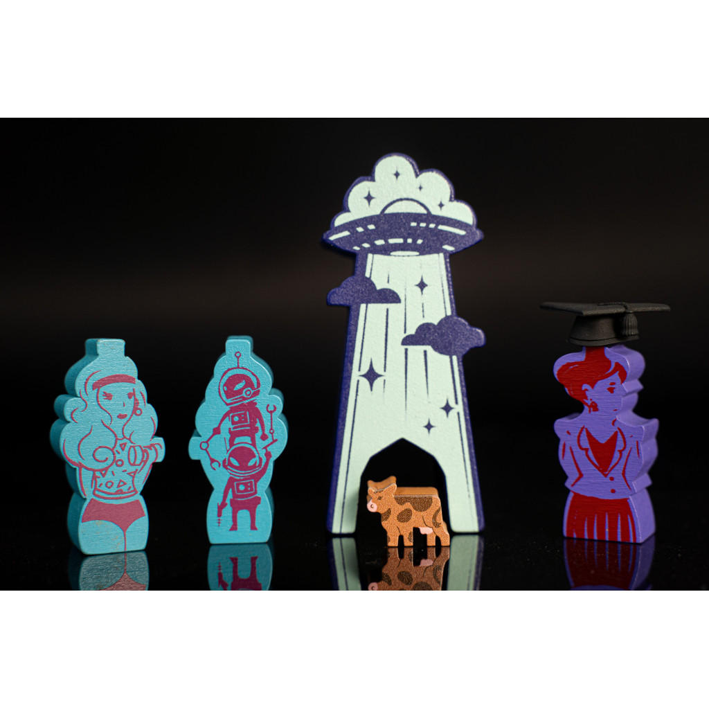 The aliens have come to silo humans—to brainwash them, control them, and preserve their civilization—for their cosmic goals! Players compete for majority influence in key locations in this small town, seeking to activate the powers of the locations and control the human specimens to gain social power.