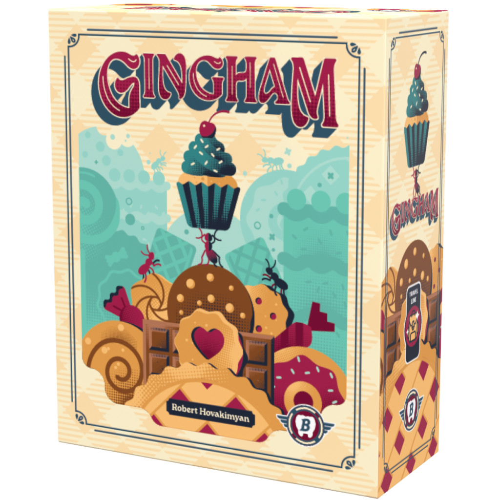 Gingham is a tricky game of confection connection. In this game, players position their queens around the gingham picnic blanket and deploy their ants to connect sweets and claim the stockpiles they create.
