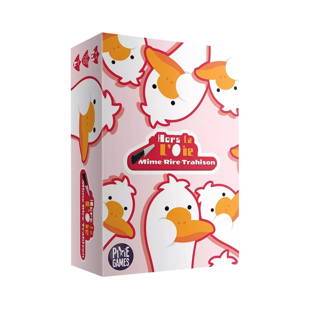 While all the players have their eyes closed, one of them wakes up and witnesses a terrible attack on a goose by another goose, in the form of two cards with original drawings!