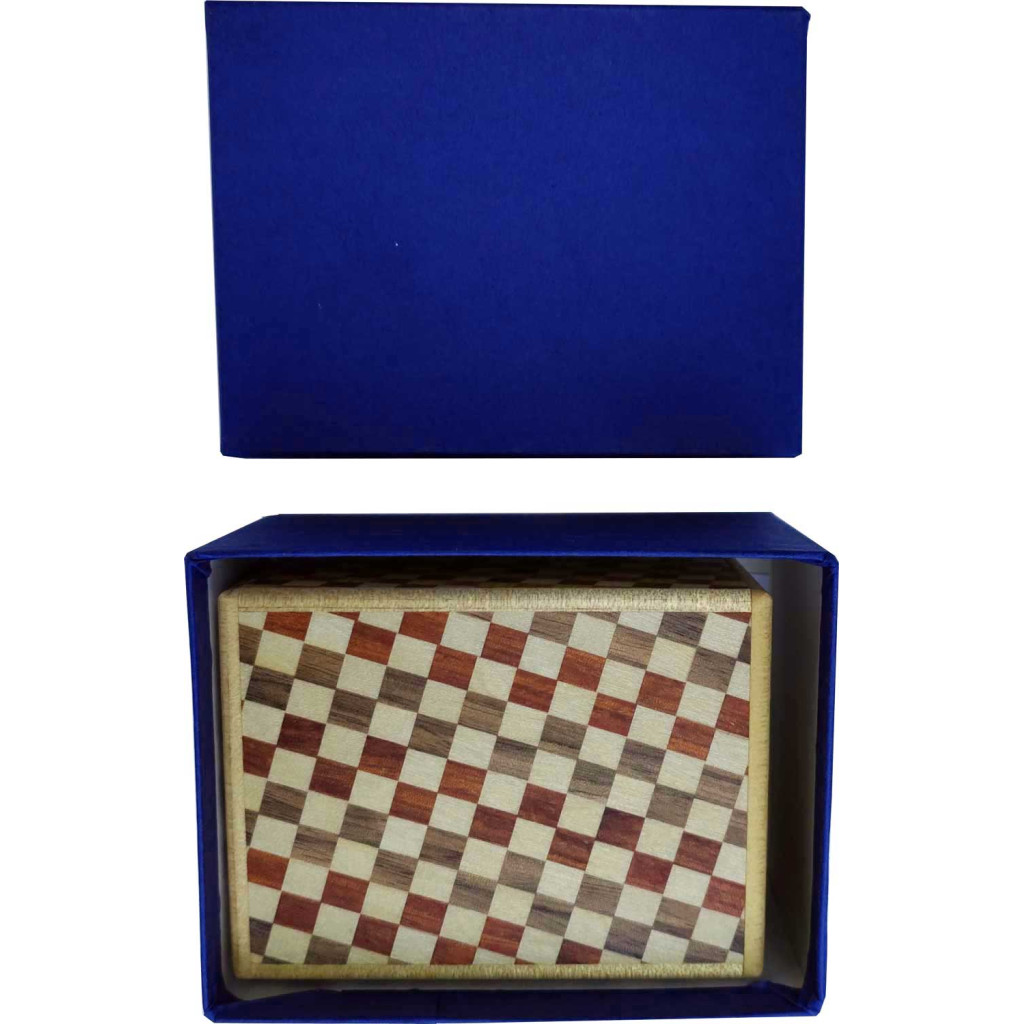 Himitsu Bako, made using traditional marquetry techniques from the Akone region, features checkerboard patterns.