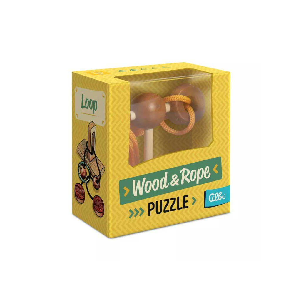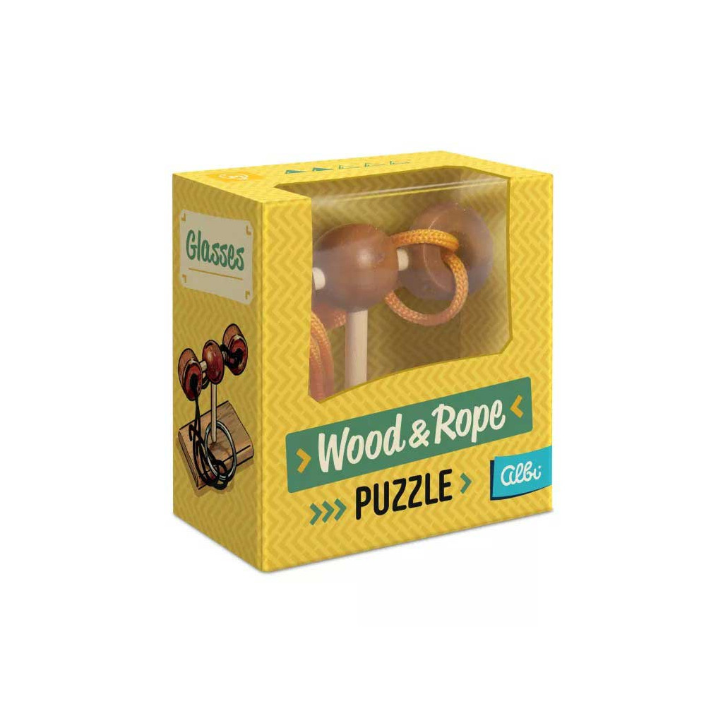 The puzzles consist of different wooden pieces connected by string and rings. The goal is to find the correct way to separate or connect them.