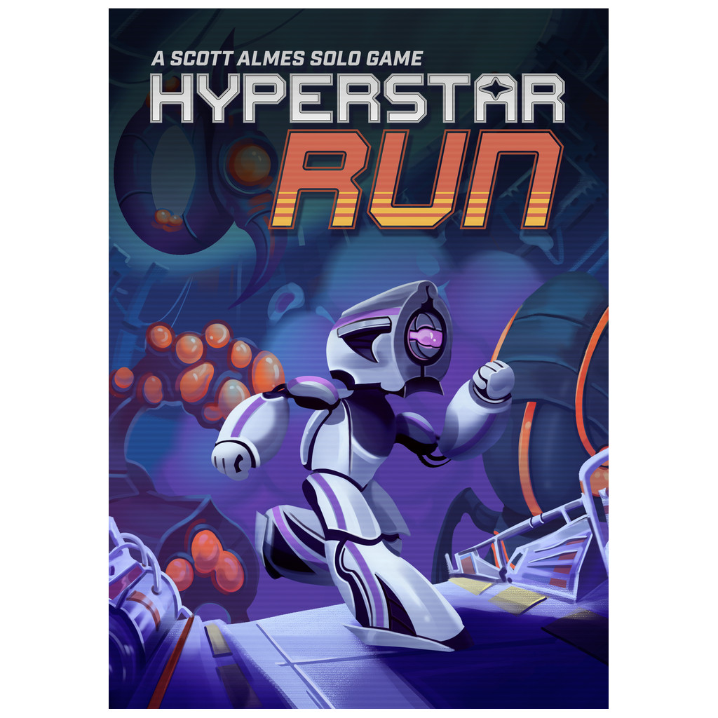 Hyperstar Run is the eighth game in the Button Shy Simply Solo series. These are games that are one player only, light on rules, and big on replayability.