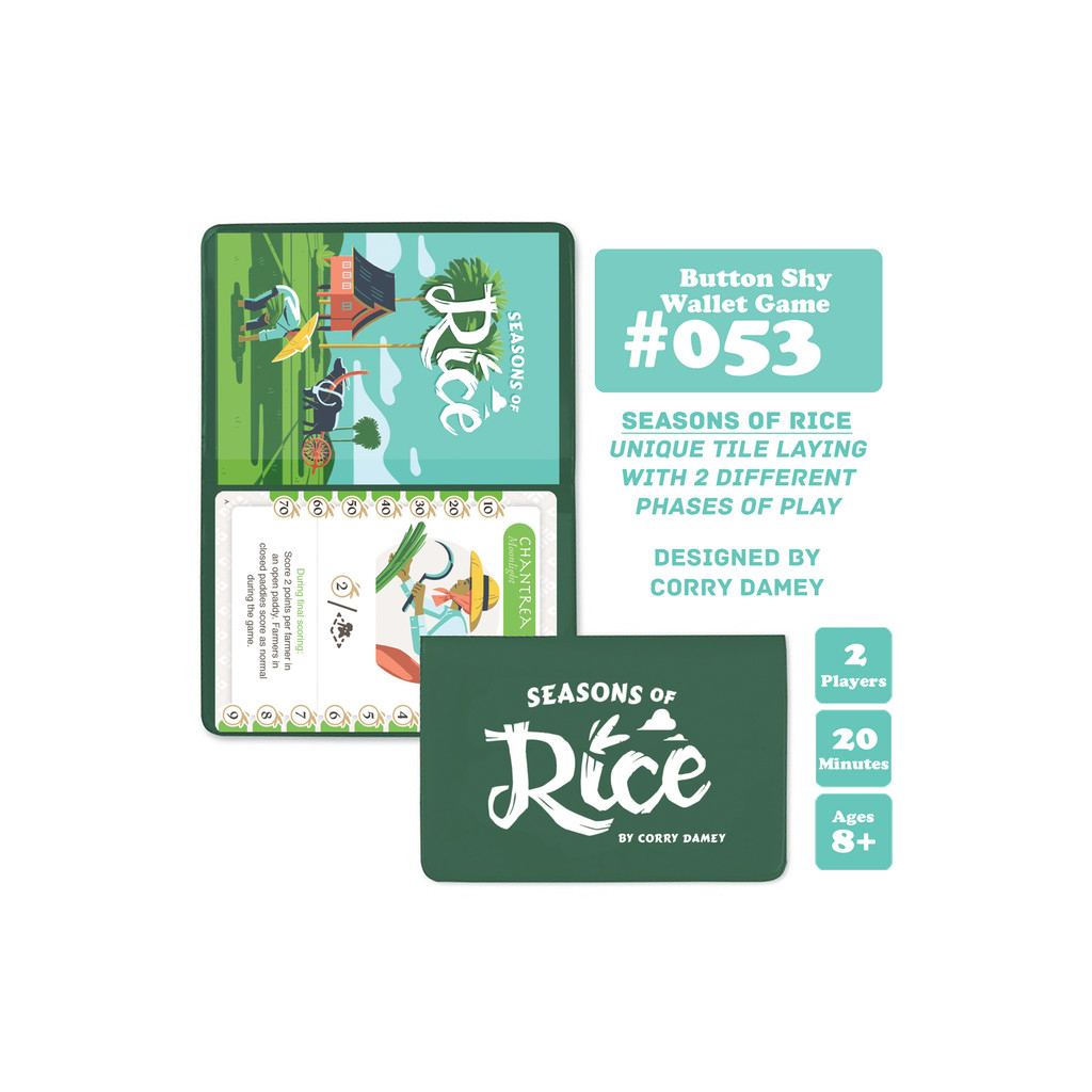 In Seasons of Rice, Corry Damey’s 18-card tribute to his Cambodian heritage, players are farmers puzzling together paddy cards to expand their family’s “landscape” of rice paddies and ensure the most bountiful of harvests.