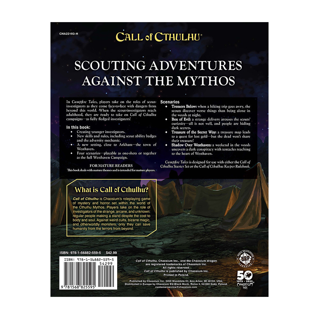 Call of Cthulhu: Campfire Tales is designed for use with either the Call of Cthulhu Starter Set or the Call of Cthulhu: Keeper Rulebook.