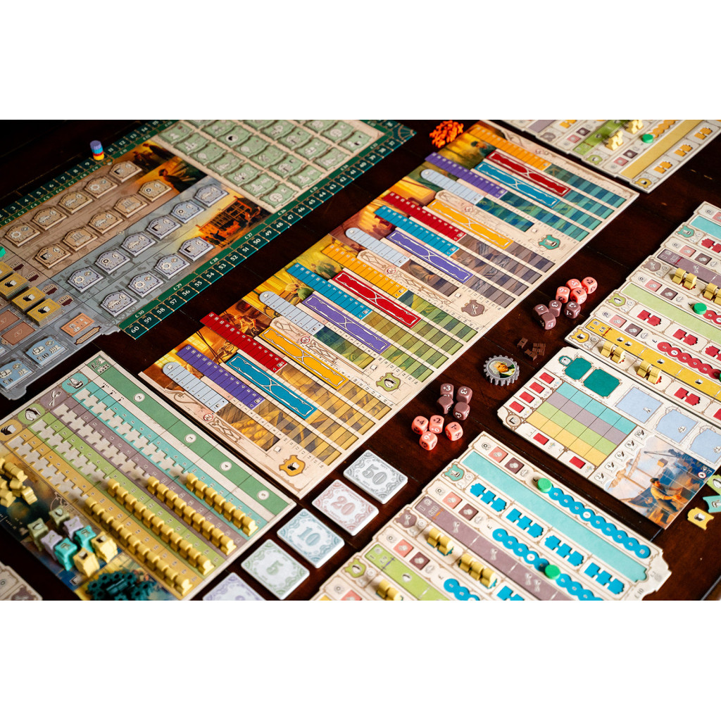 Arkwright is an economic board game designed by Stefan Risthaus, where players take on the roles of entrepreneurs in 18th-century England, building and managing factories. In this new anniversary edition, the game has been streamlined and updated with a new rulebook and artwork. The game offers different play experiences through various modules, including “Spinning Mule” and “Waterframe” variants, as well as an East India module. It also features a solo mode, known as “Automa,” which allows a single player to compete against artificial opponents.
