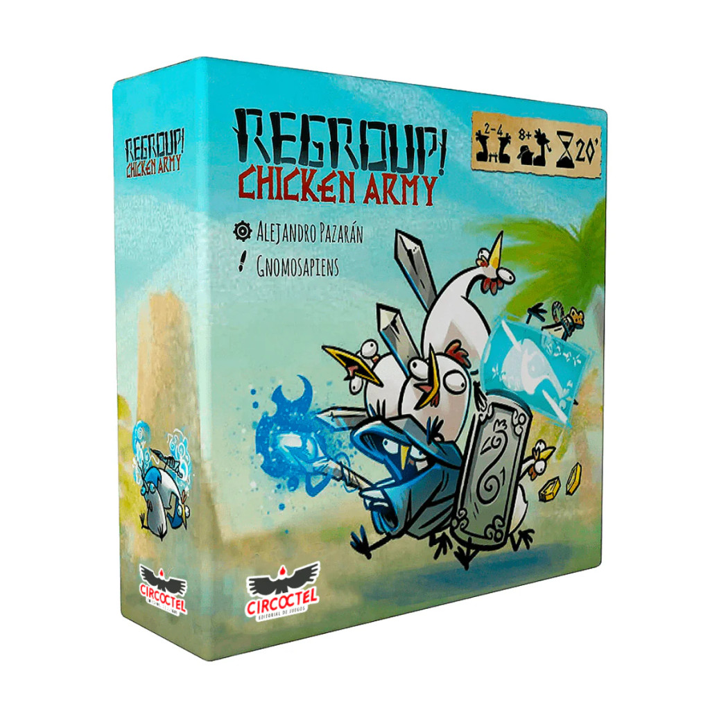 On each turn, you choose a card and place it over another card on your grid, searching for a balance between physical or magical attack and defense. Once all players have placed and organized their cards, the round ends and the battle begins. Each player deals or absorbs damage (physical or magical) based on the connected chickens of the same type (swords, shields, wands, barriers). The last player left standing wins!