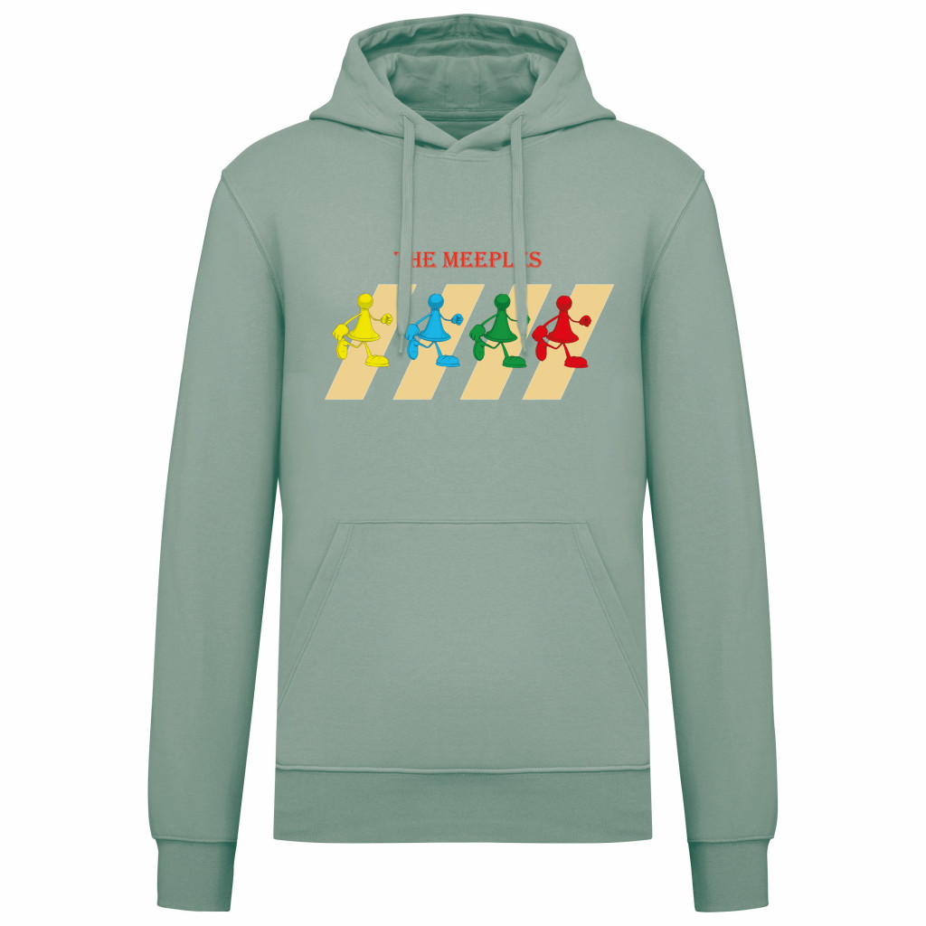 A hoodie so warm and cozy that even a Meeple decided to get out of its box to cross the crosswalk! This recycled cotton sweatshirt is proof that you can have style, save the planet... and keep your pawns warm. Ready to play the comfort card?