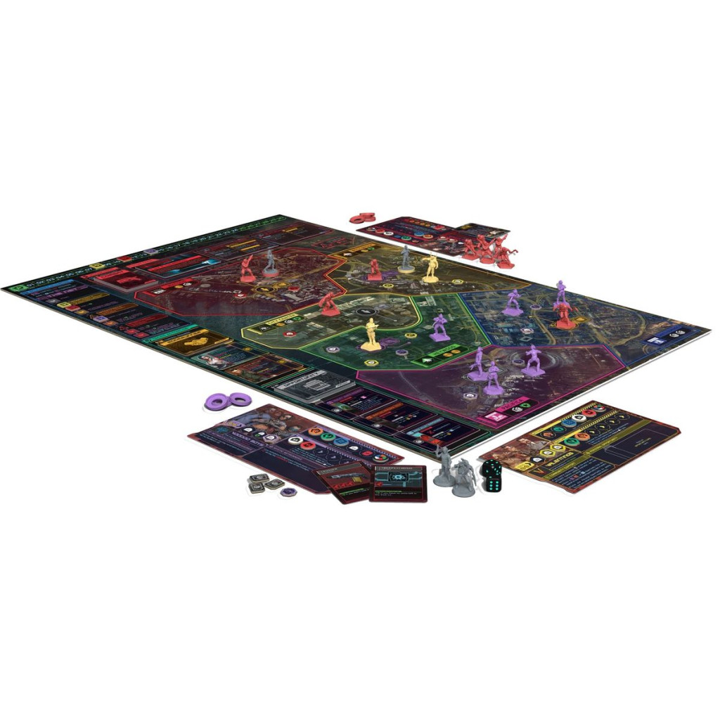Cyberpunk 2077: Gangs of Night City is a big box strategy game with miniatures in which gangs fight for control of a city, with the city also being a living part of the game.