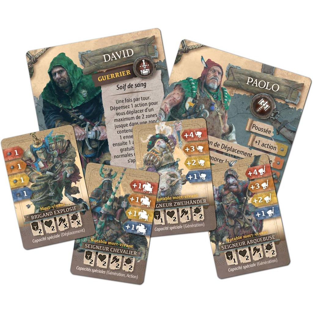 Of course, all these characters and monsters come to life in the form of 32 superb miniatures. Unpainted miniatures (but with distinctive resin colors for adventurers, monsters, and bosses).
