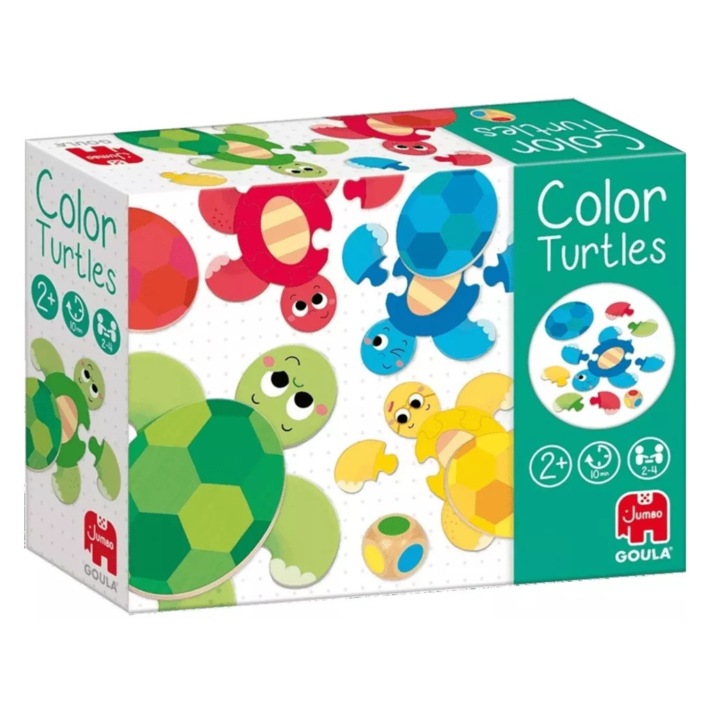 At the beginning of the game, the children choose a turtle color by placing the central piece of their turtle in front of them. The rest of the pieces (legs, heads, and shells) are placed in the center of the table. Then, in turn, the children roll the die. The player who has the turtle matching the color indicated takes a piece from the middle of the table and adds it to their turtle, even if they did not roll the die.