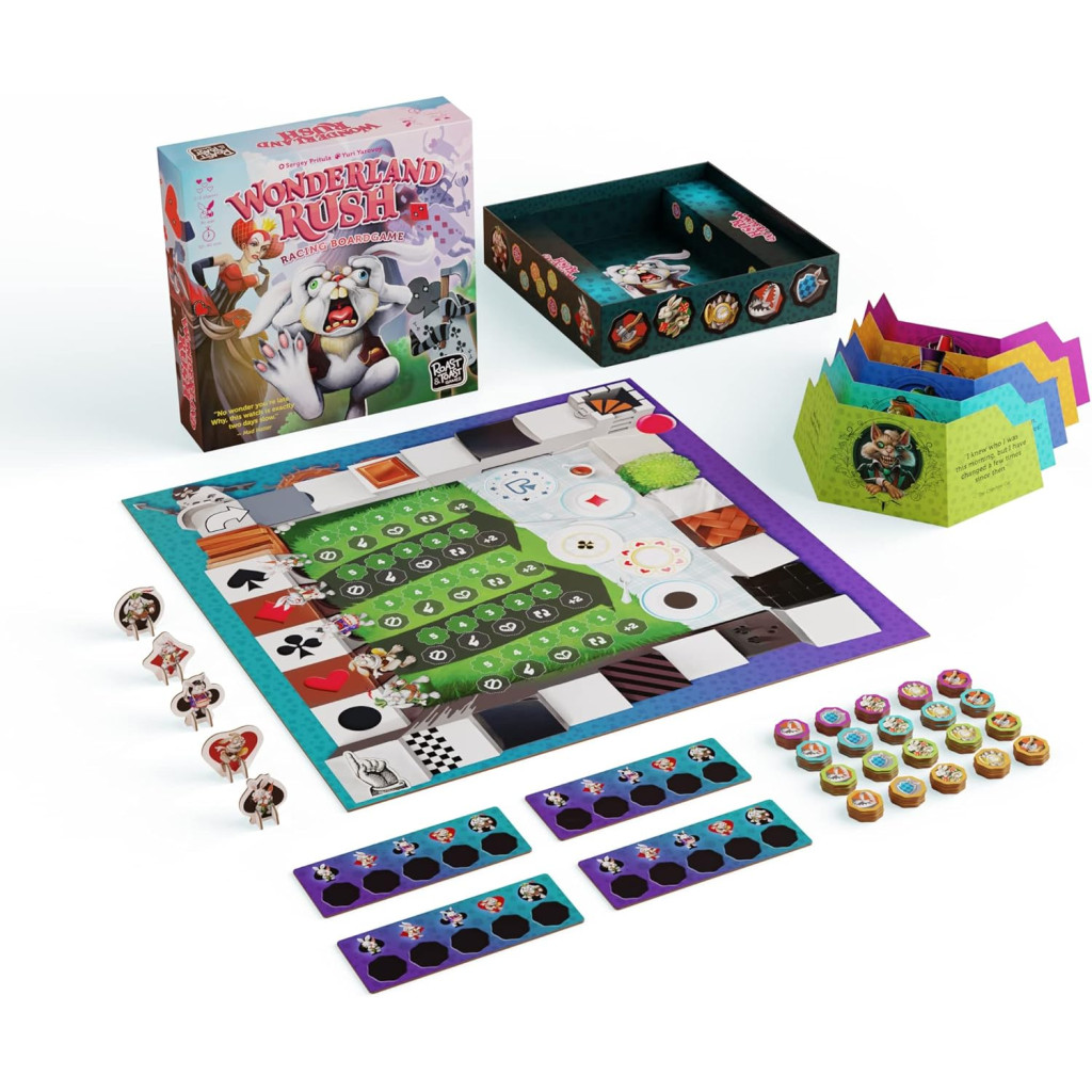 In this competitive game, you watch a race and cheer on the rabbits by giving them cakes. The rabbits are not assigned to any particular player, so you can choose which one you want to give cakes to.