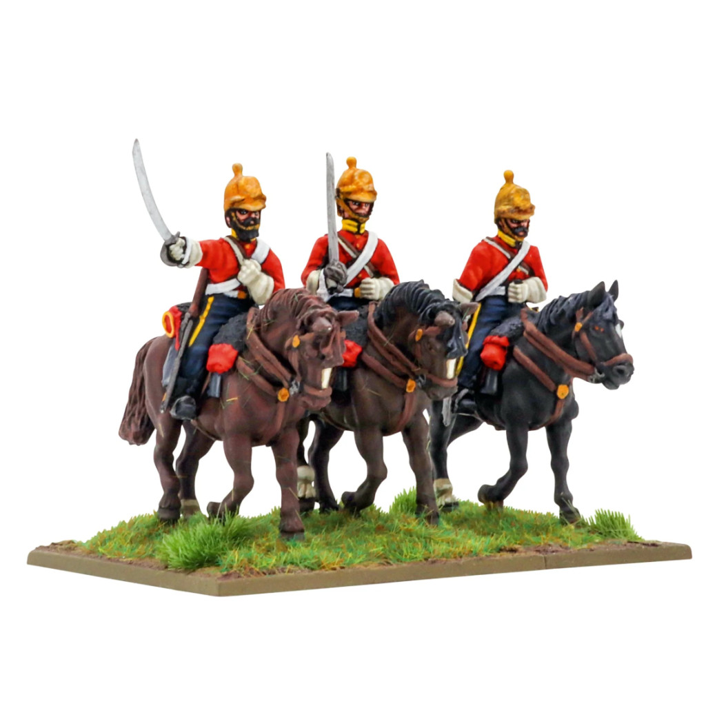 At the Battle of Balaklava, the British Heavy Brigade was commanded by General Sir James York Scarlett, and composed of two squadrons each of the 1st Dragoons (The Royals), the 2nd Dragoons (Scots Greys), the 4th Dragoon Guards (Royal Irish), the forth Dragoon Guards (Princess Charlotte of Wales's) and the 6th Dragoons (Inniskilling).