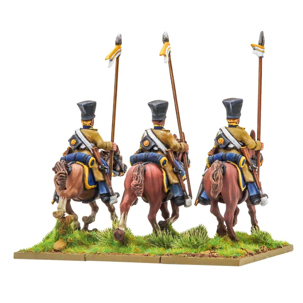 Russian lancers (also known as Uhlans in the Prussian fashion) were uniformed in Polish style, with tall four-pointed ‘czapka’ hats and greatcoats contrasting with their gaudily dressed British opponents. On campaign, their czapkas were usually covered with oilskin for protection from the elements.