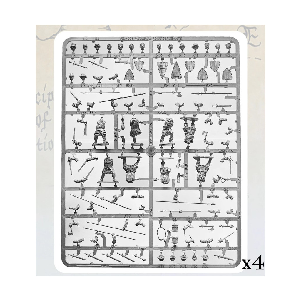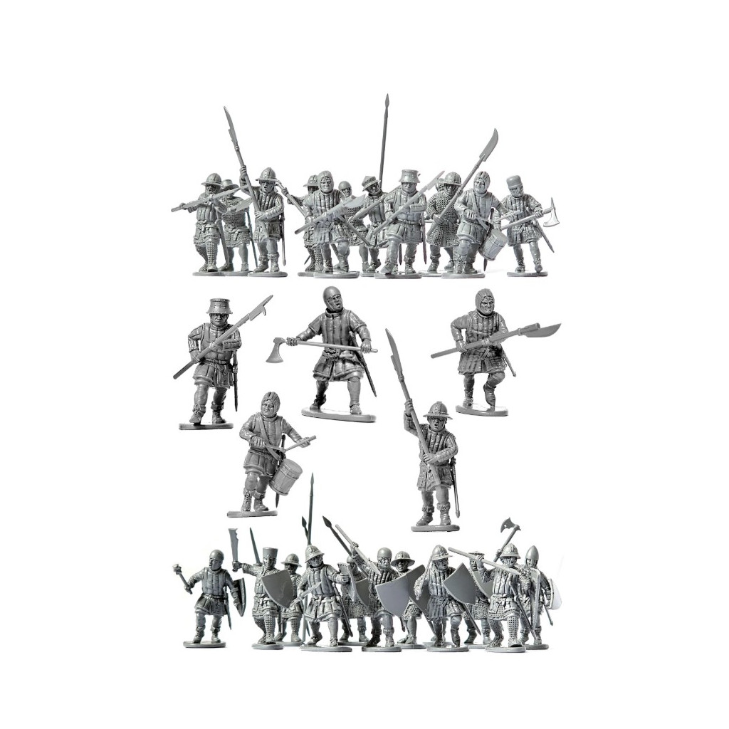 This is a 32 figure set representing Medieval Foot Sergeants of the late 12th to late 13th Century, and contain some great poses and an enormous amount of variety in weapons, heads and costume.